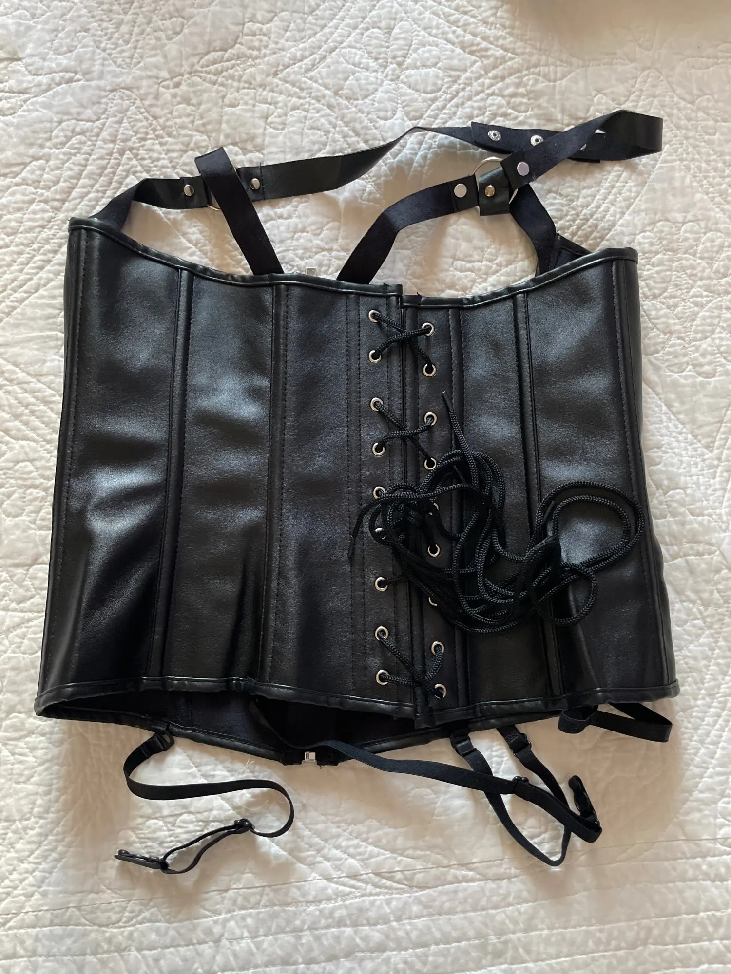 Item is absolutely fire! Astounding and marvelous. Remember that this is a corset so it’s better to get bigger than smaller because it can retract to almost 3 times its original size. Ordered a small I had to cut the strings because it was way too tight I definitely needed at least a medium. 5’6”,155pounds