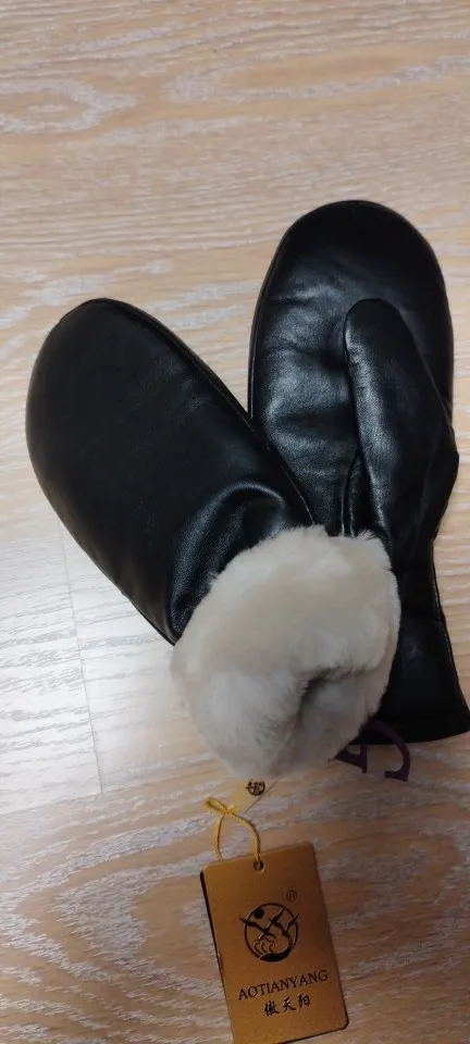 Mittens ladies leather sheepskin gloves real wool winter warm fur gloves thickened Female leather and wool integrated gloveswind