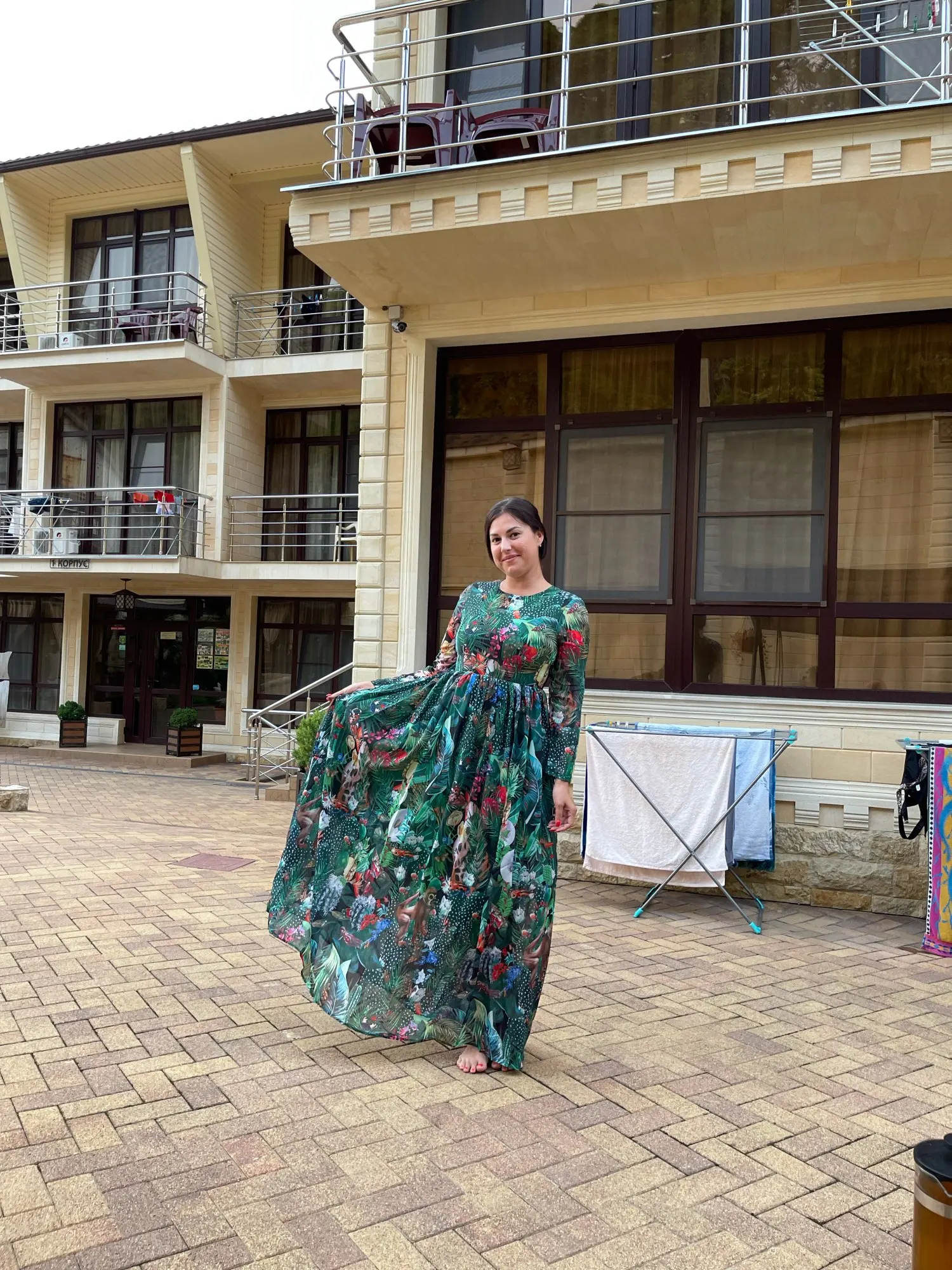 MoaaYina Fashion Designer dress Spring Autumn Women Dress Long sleeve Rainforest Floral-Print Maxi Dresses