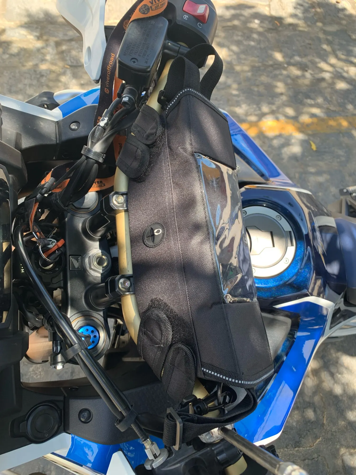 Size si ok, you can fit some small things in it or use it as toolbox. Hole for the cable is not cut, so you can cut it by yourself or leave it sealed for better water protection. Screen with mobile phone holder is big enuogh, some GPS will also fit in.