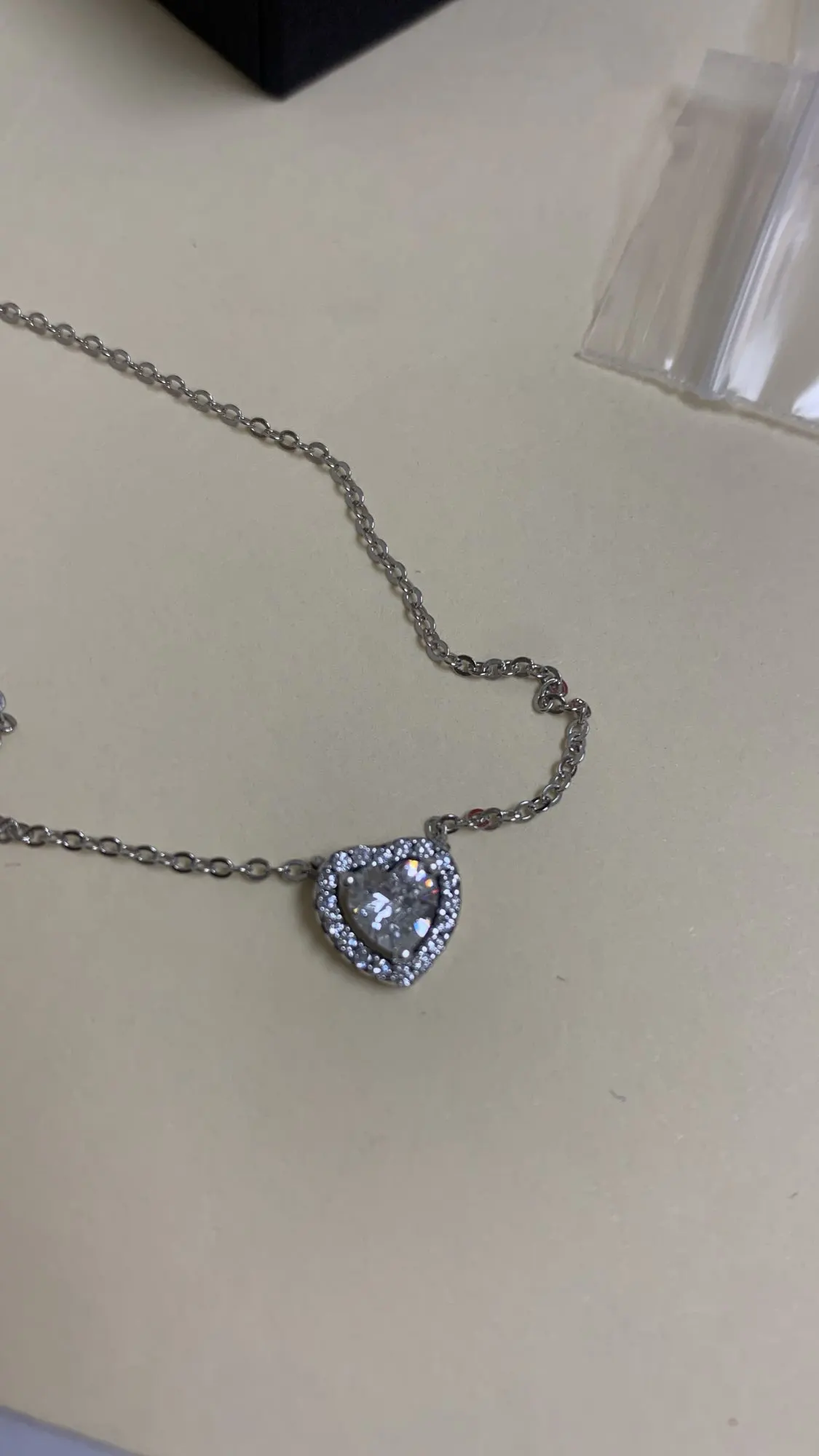 Really cute!!! very simple and the chain is very thin , the heart is very shiny and the same size as the ring with the same design