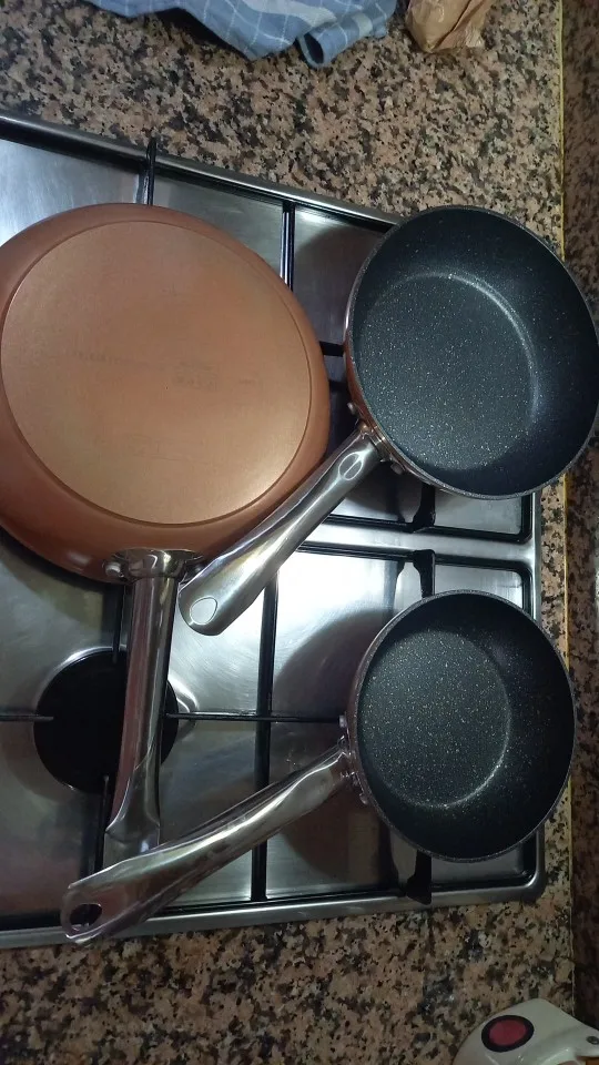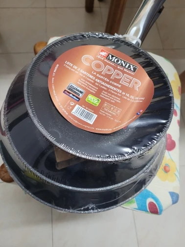 Monix Copper-set 3 non-stick Copper finish aluminium pans. Induction vitroceramic gas kitchen Set