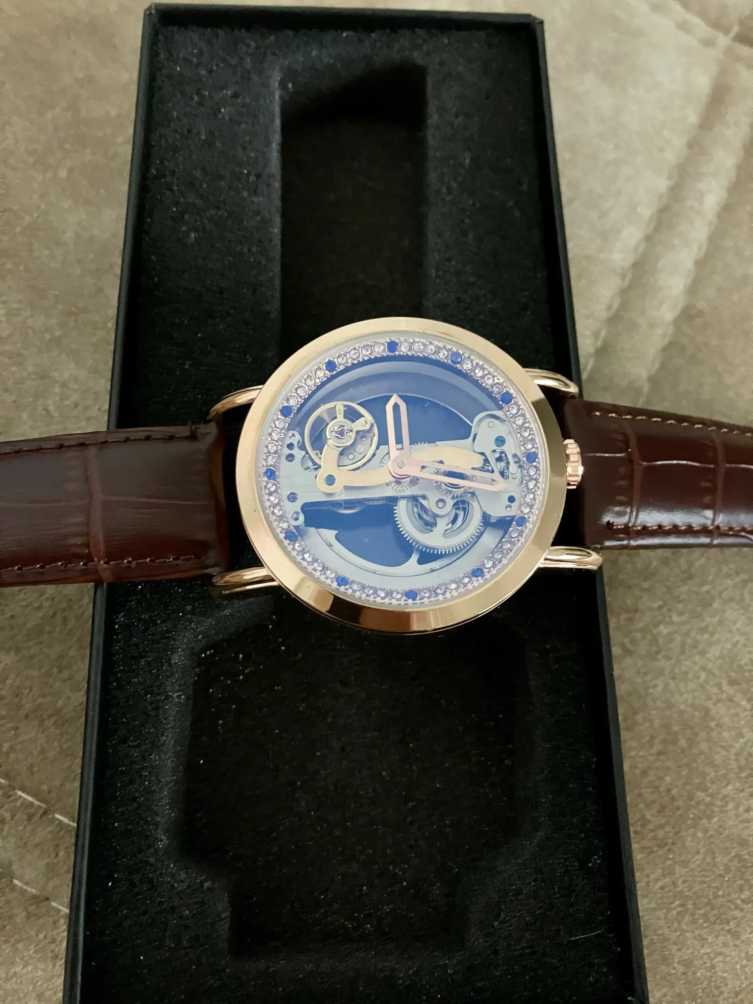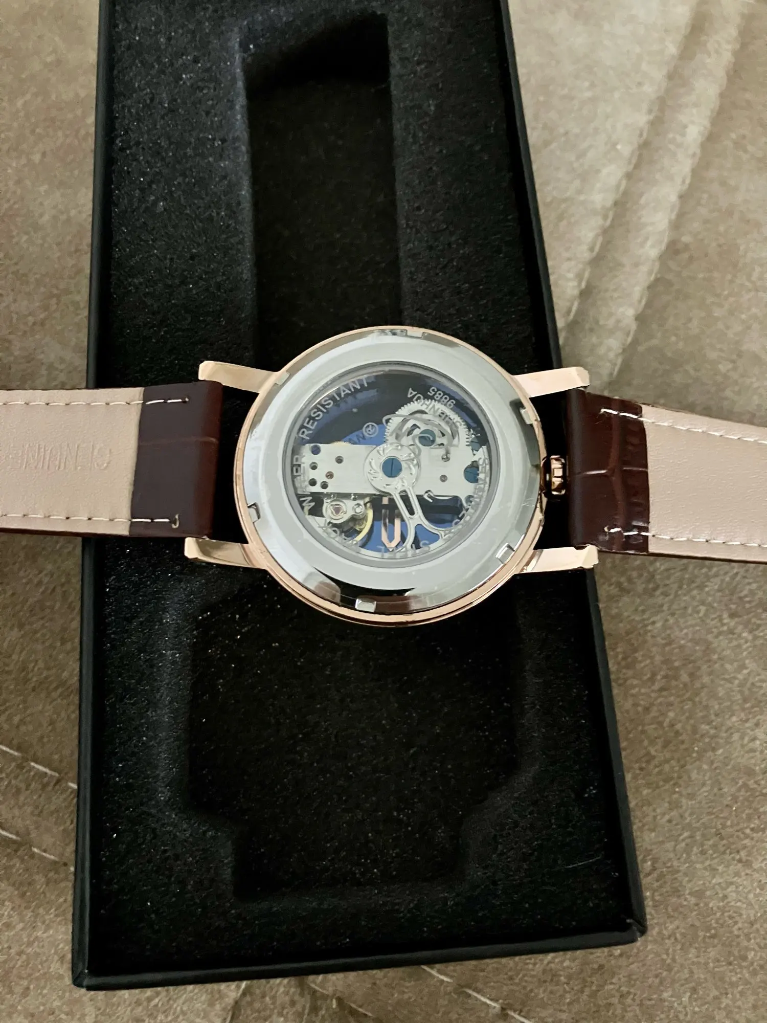 Montre Femme Rose Gold Womens Leather Mechanical Skeleton Watches Strap Skeleton Automatic Watches for Woman zegarek damski