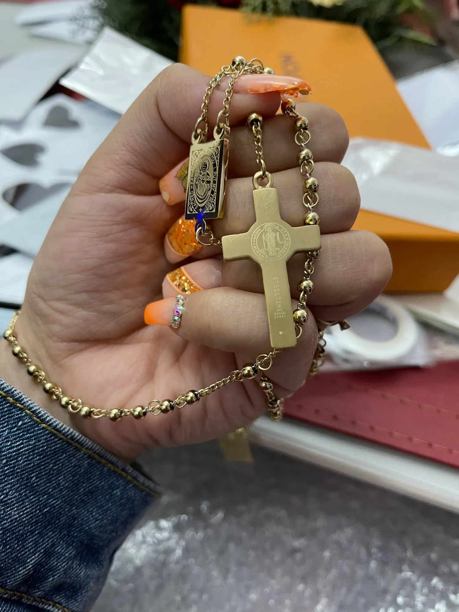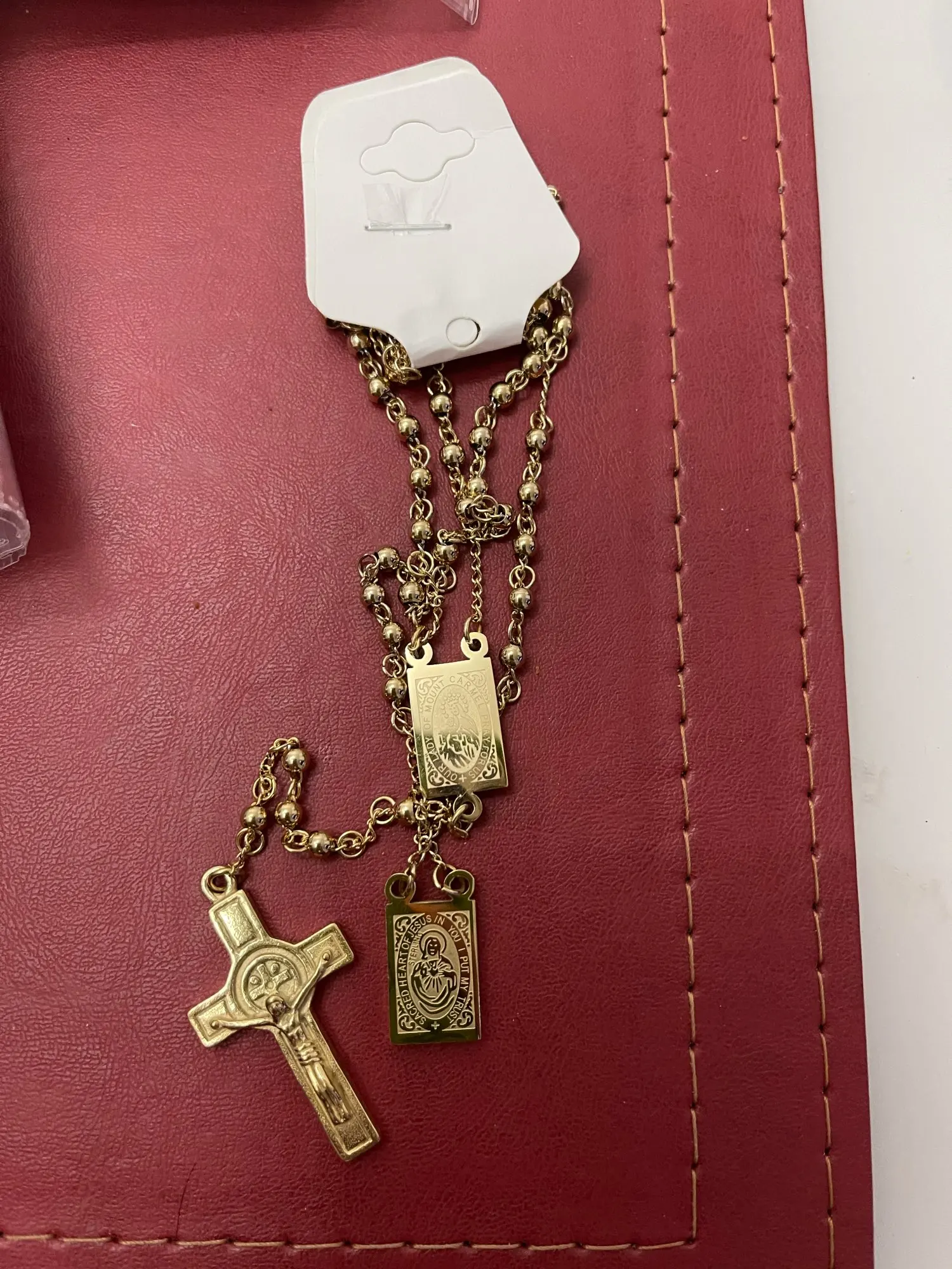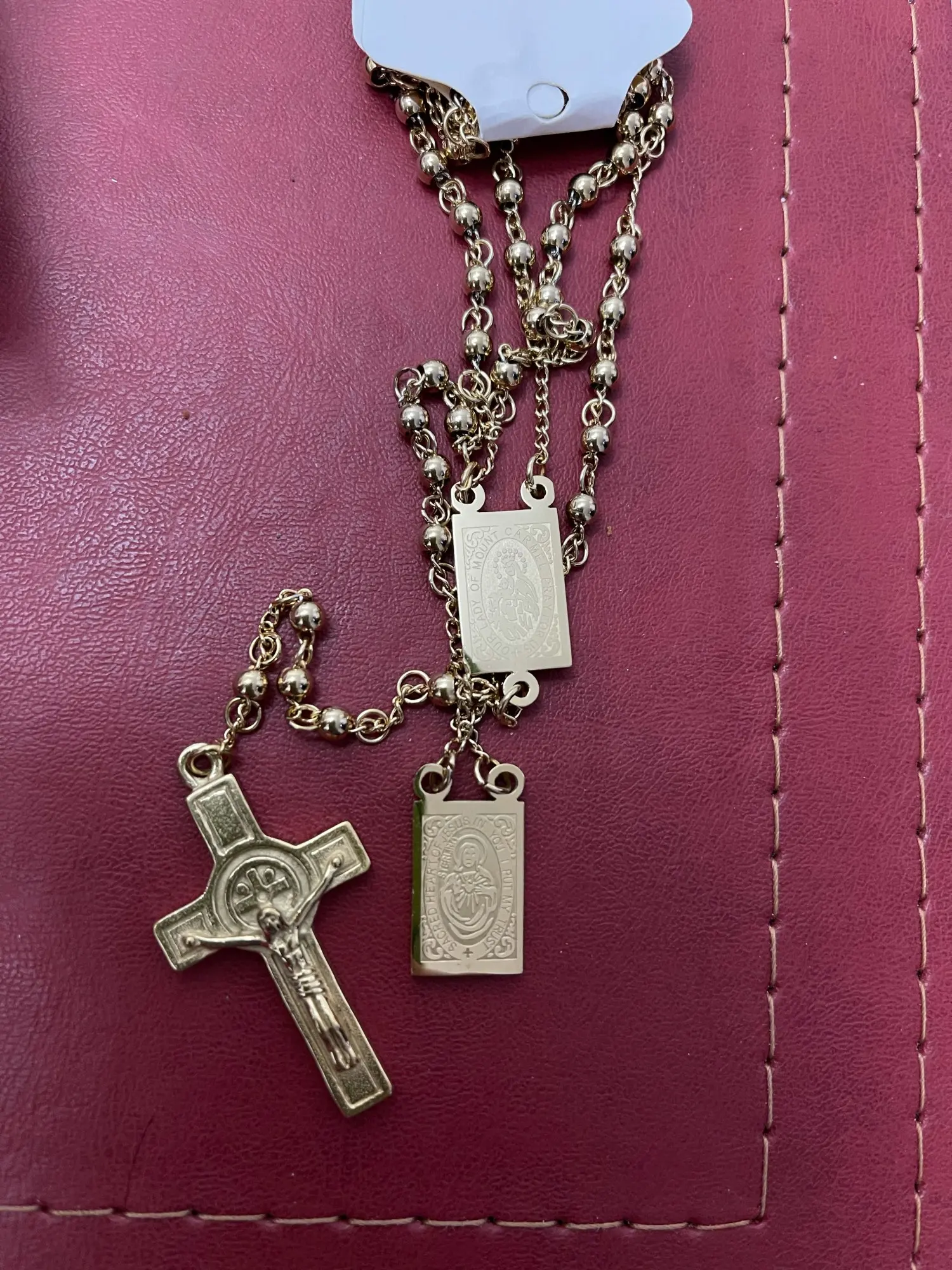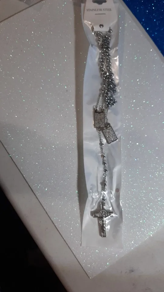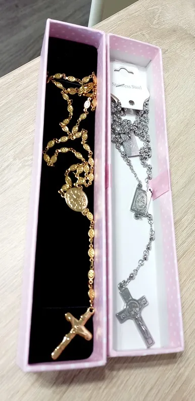 Moorvan 4mm,66cm long gold color men rosary bead necklace Stainless steel Religion of Jesus ,women cross jewelry, 2 colors