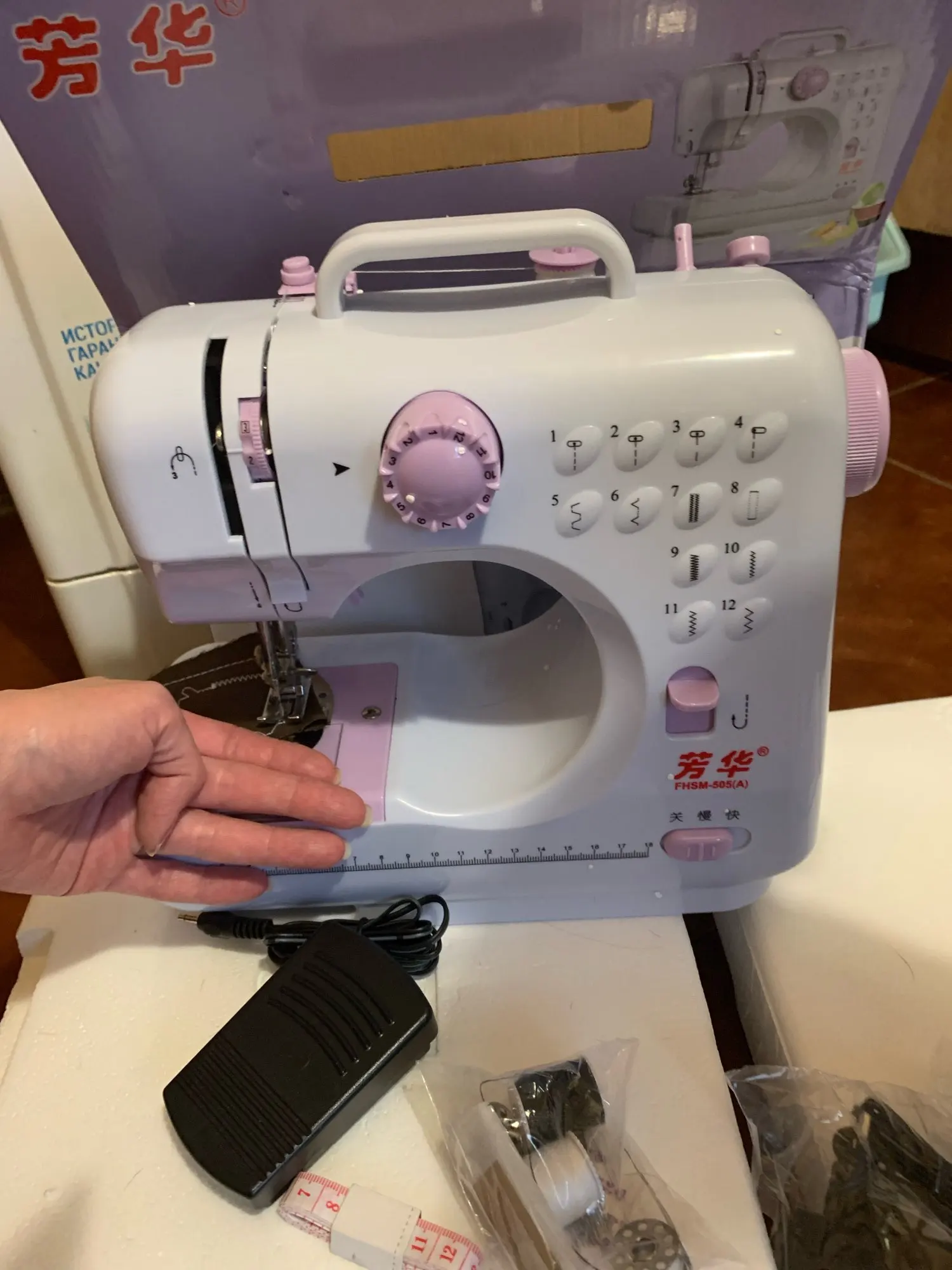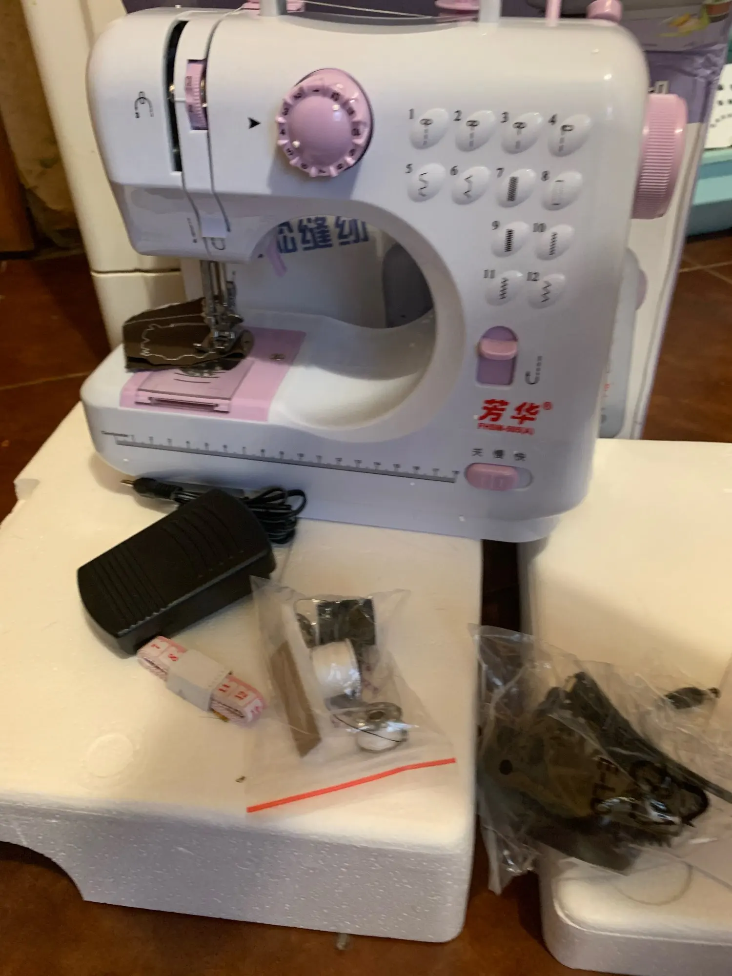 More Free Gifts Fanghua Brand FHSM505A Sewing Machine Multifunctional Household Knitting Electrical Mini Portable DC Power Pedal