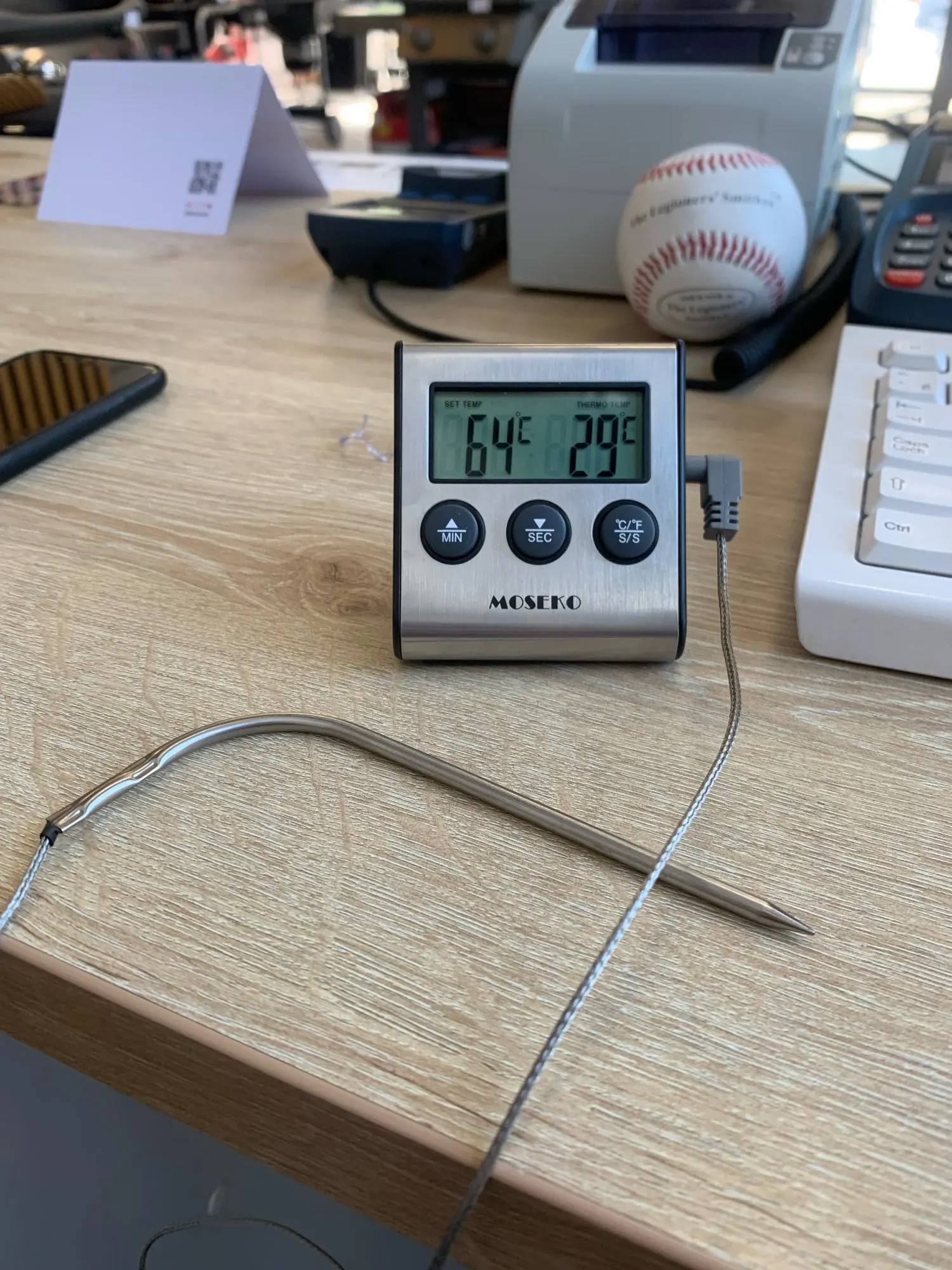MOSEKO Digital Meat Oven Cooking Kitchen Thermometer for Smoker Grill Food BBQ Clock Timer Alarm with Stainless Steel Probe