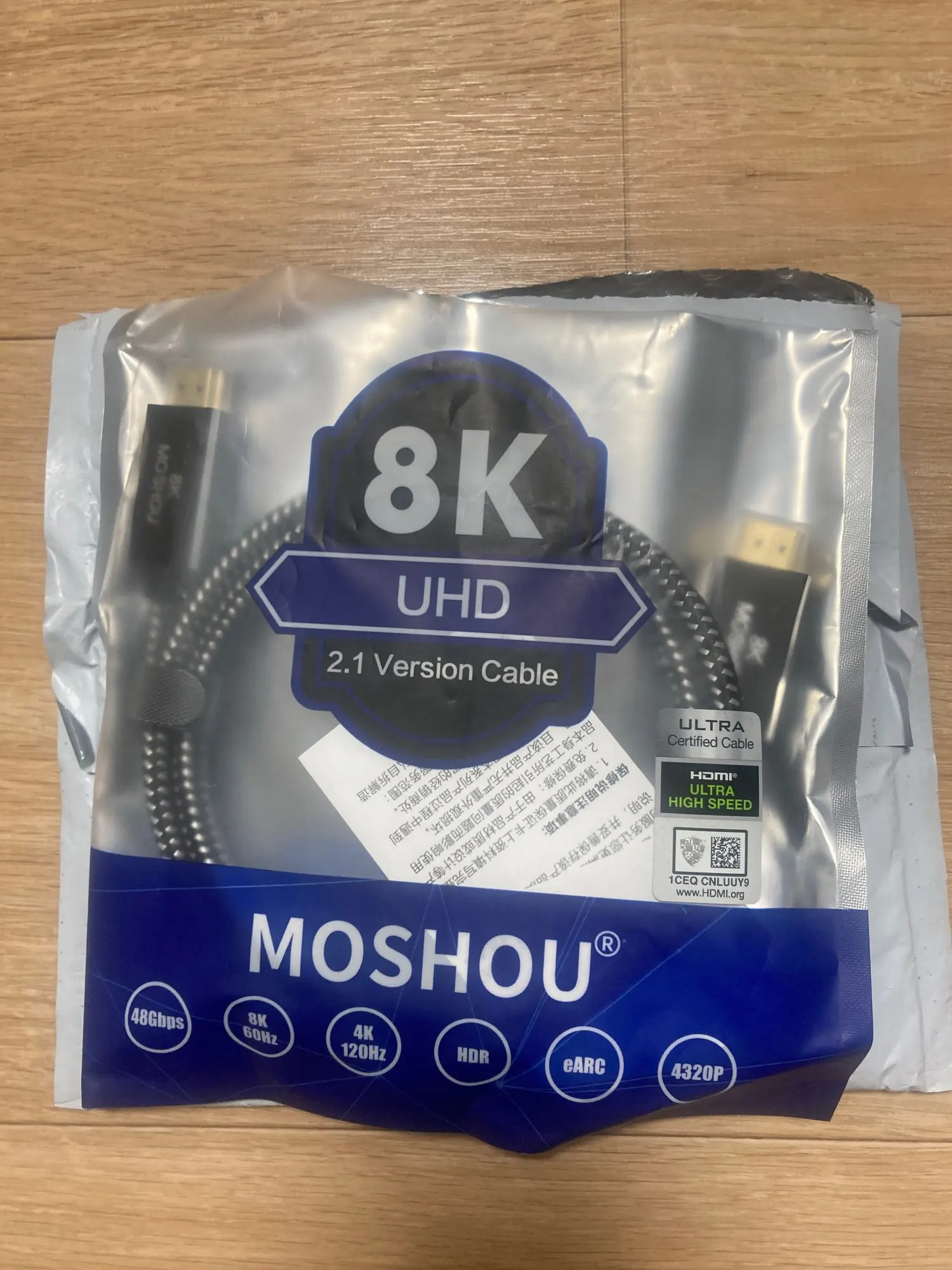 MOSHOU HDMI 2.1 Cable 8K 60Hz 4K 120Hz 48Gbps ARC eARC HDR 2.0 Video Cord for Amplifier TV PS4 NS Projector High Definition