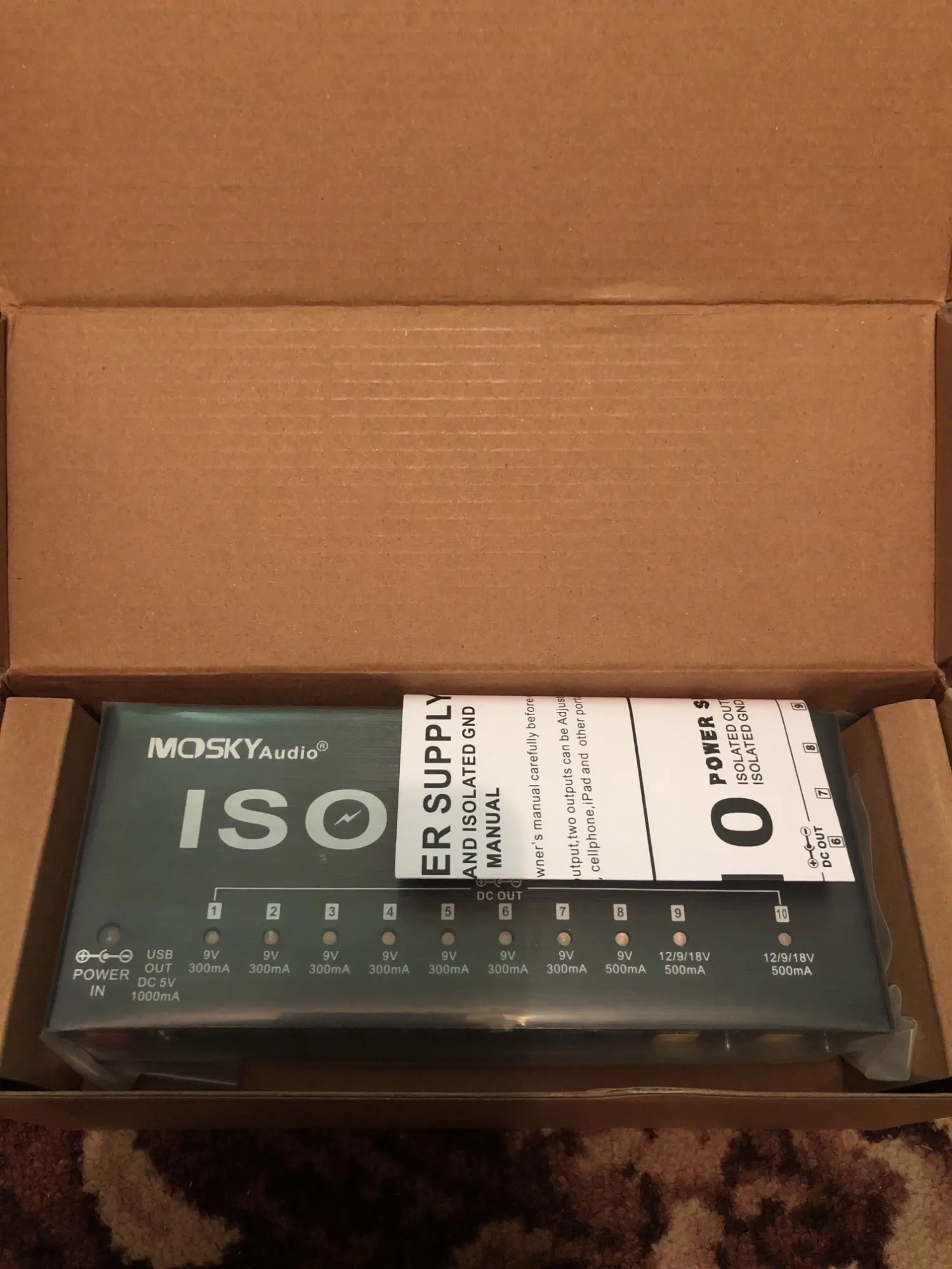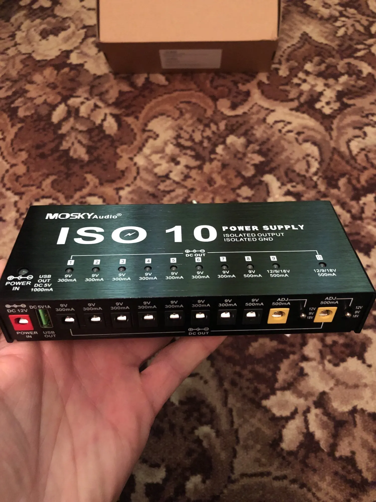 MOSKY ISO-10 Portable Guitar Effect Power Supply Station 10 Isolated DC Outputs & One 5V USB Output for 9V 12V 18V Guitar Effect