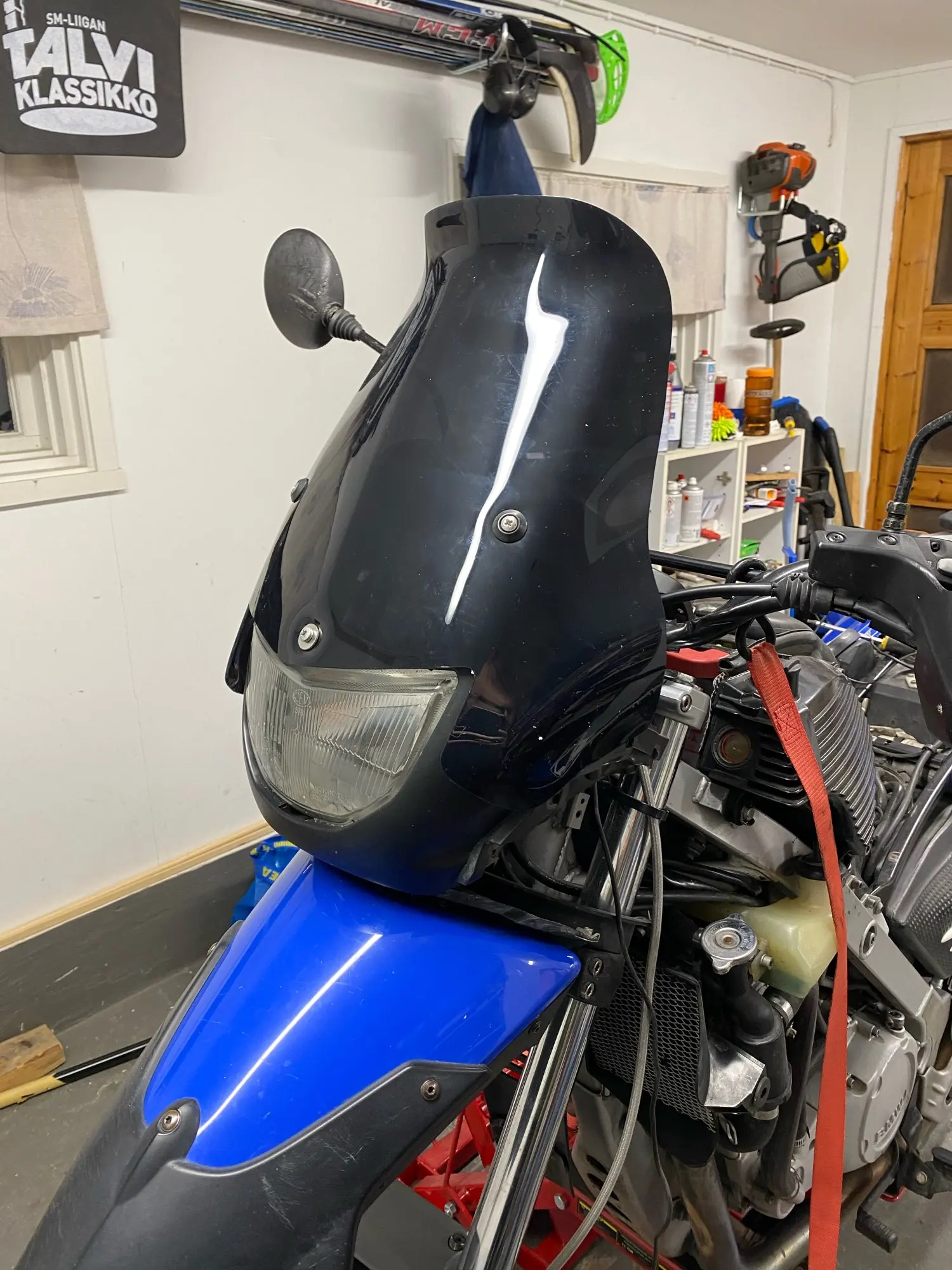 Product fits the bike. Bottom hole not in center with the curve above headlight. But still possible to mount on the bile.