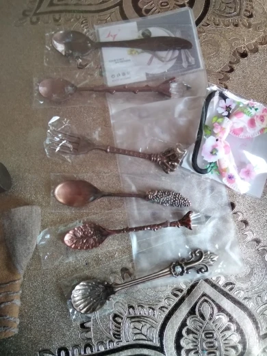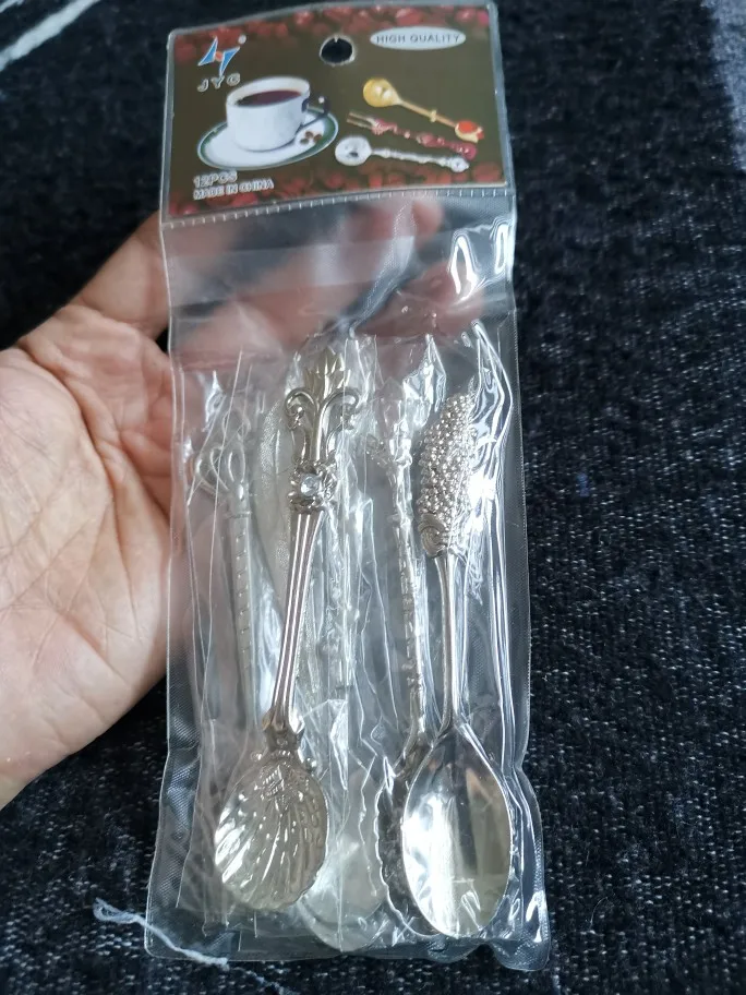 MR 6Pcs/Set 10cm Vintage Dessert Spoons Fork Mini Royal Style Metal Gold Carved Coffee Snacks Fruit Prikkers Dessert Fork