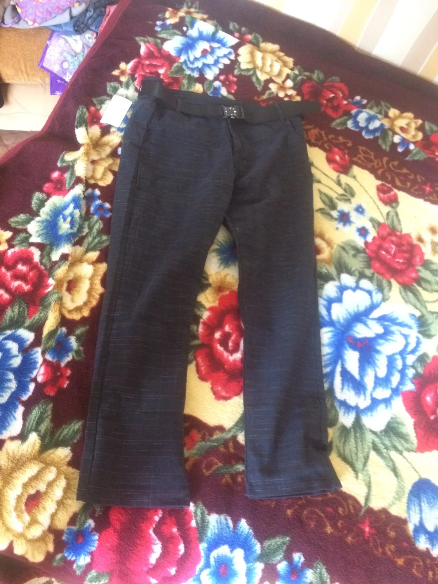 very very poor quality! have to make hole yourself for the button and loose threads everywhere! eventhough the pants fits my waist i cant wear it at all because the ankle and calf areas are very very narrow. the material quality is very poor, looks and feels like cheap crappy pants that nobody wants to wear and is very uncomfortable