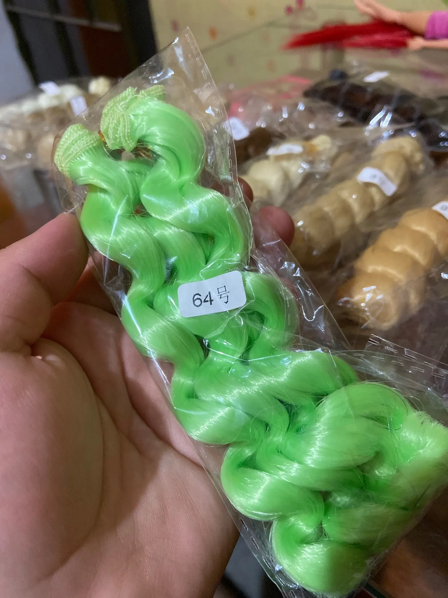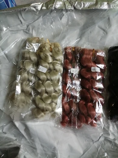 color is spot on, shipping super fast. The hair itself is on the thick side and not as supple as I know some people would like, but it "falls" by itself. So it's not the greatest for small dolls and figurines. The hair is about the same quality is standard toy store doll hair but a more fun color. Gets fly aways pretty easily as you can see, could have brushed it out but left it on to show other potential buyers