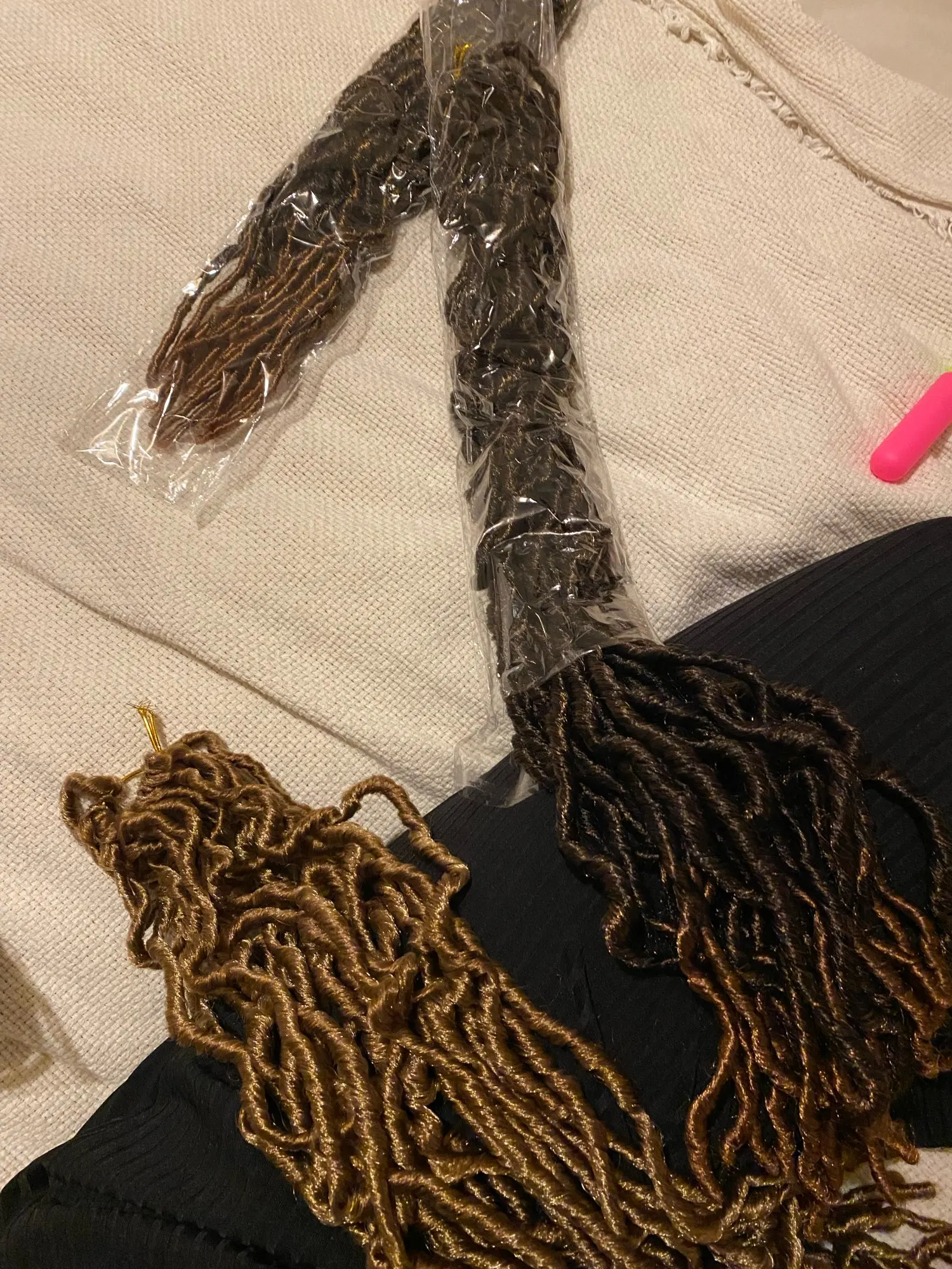 Received in good condition with a gift of a crotchet pin. Lovely hair,but received in 48days...