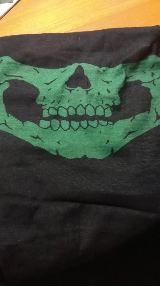Not as in picture. The skull has normal teeth and not the set of teeth with fangs. Will still work as needed just not the print i wanted