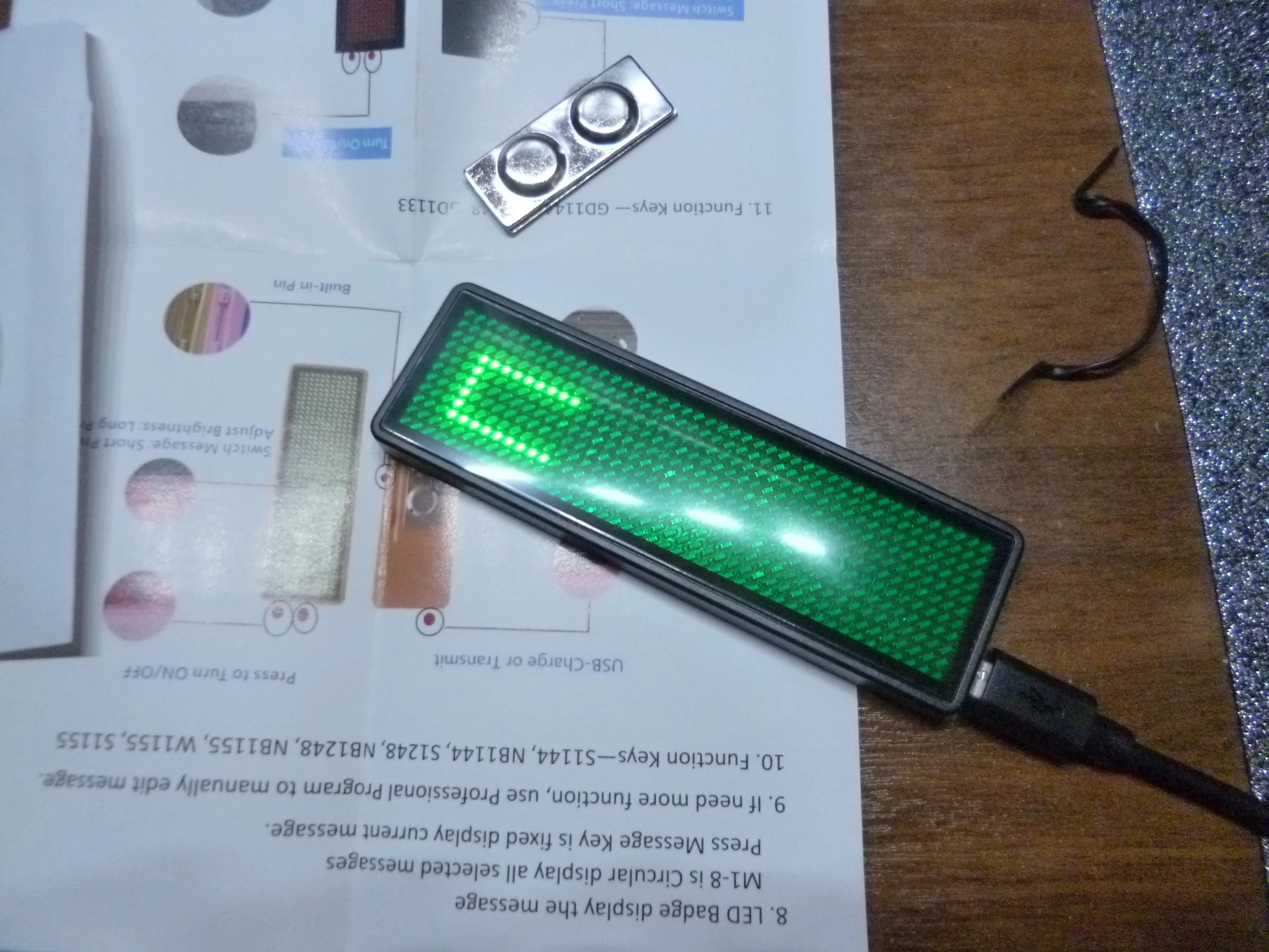 Multi-langauge programmable LED name badge rechargeable mini LED display USB LED name tag sign backpack LED sign text digit sign