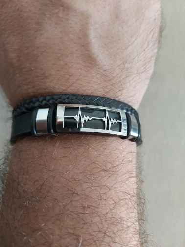 Multi Layer Black Leather Bracelets for Lovers Love Heart ECG Design Stainless Steel Cuff Bridal Bracelet Lovers' Couple Jewelry