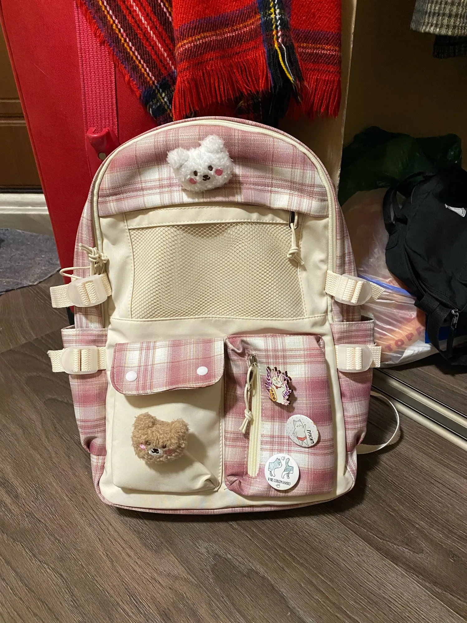 Weird material I was expecting something else. But besidse that the backpack is really nice. Little bear was inluded. The frog in the photo was bought somewhere else.