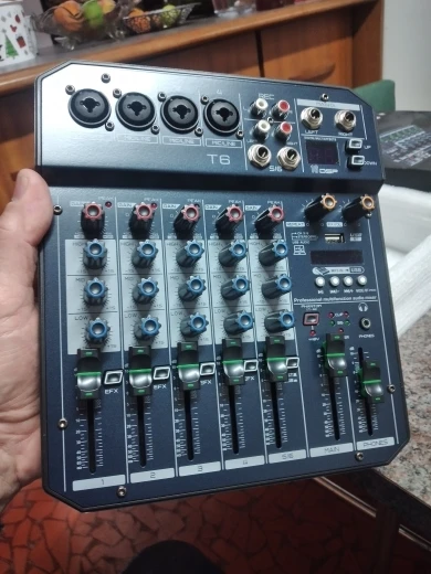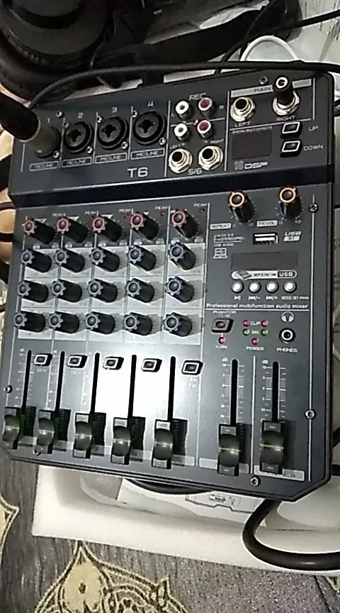 Muslady T6 Portable 6-Channel Sound Card Mixing Console Audio Mixer Built-in 16 DSP 48V Phantom power Supports BT Connection