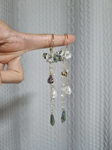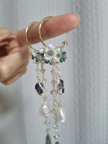 MWSONYA New Korean Holiday Crystal Earrings Super Fairy Baroque Shell Pearl Flower Drop Earrings Long Tassel Women Party Jewelry