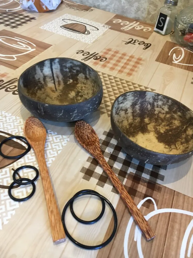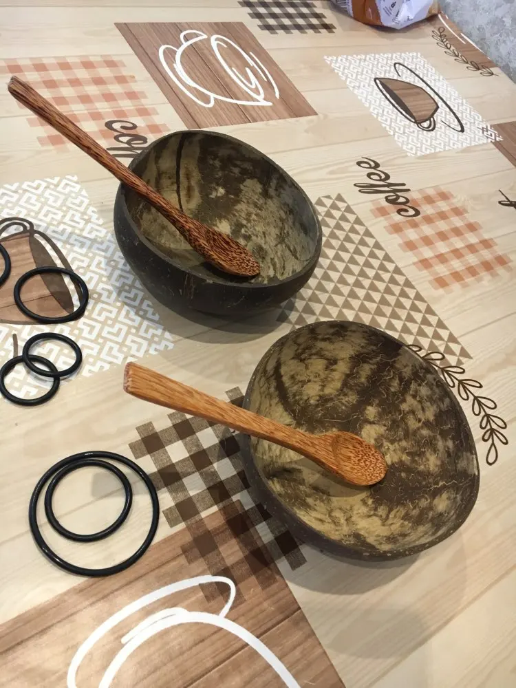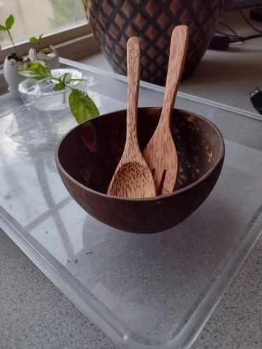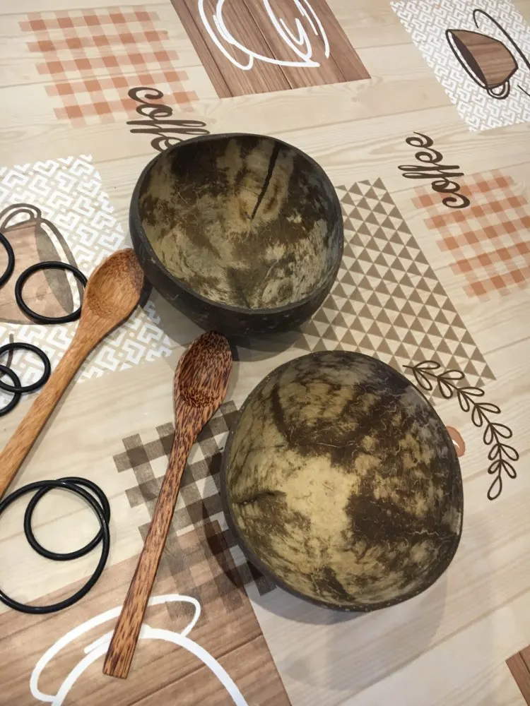 Natural coconut bowl set Fruit Salad Noodle Wooden Bowl Rice ramen Craft Decoration Creative Handmake Bowl Coconut Shell Spoon