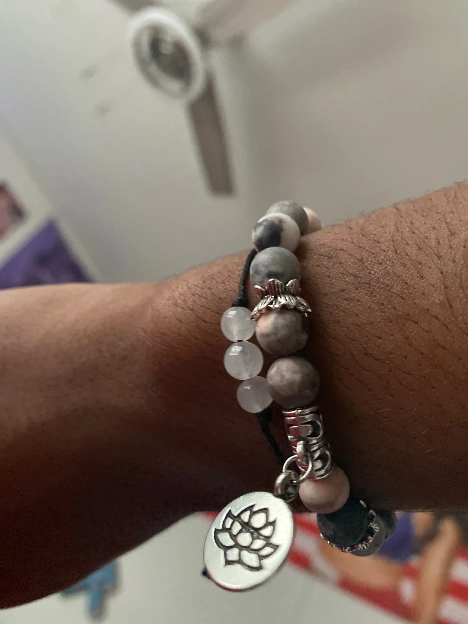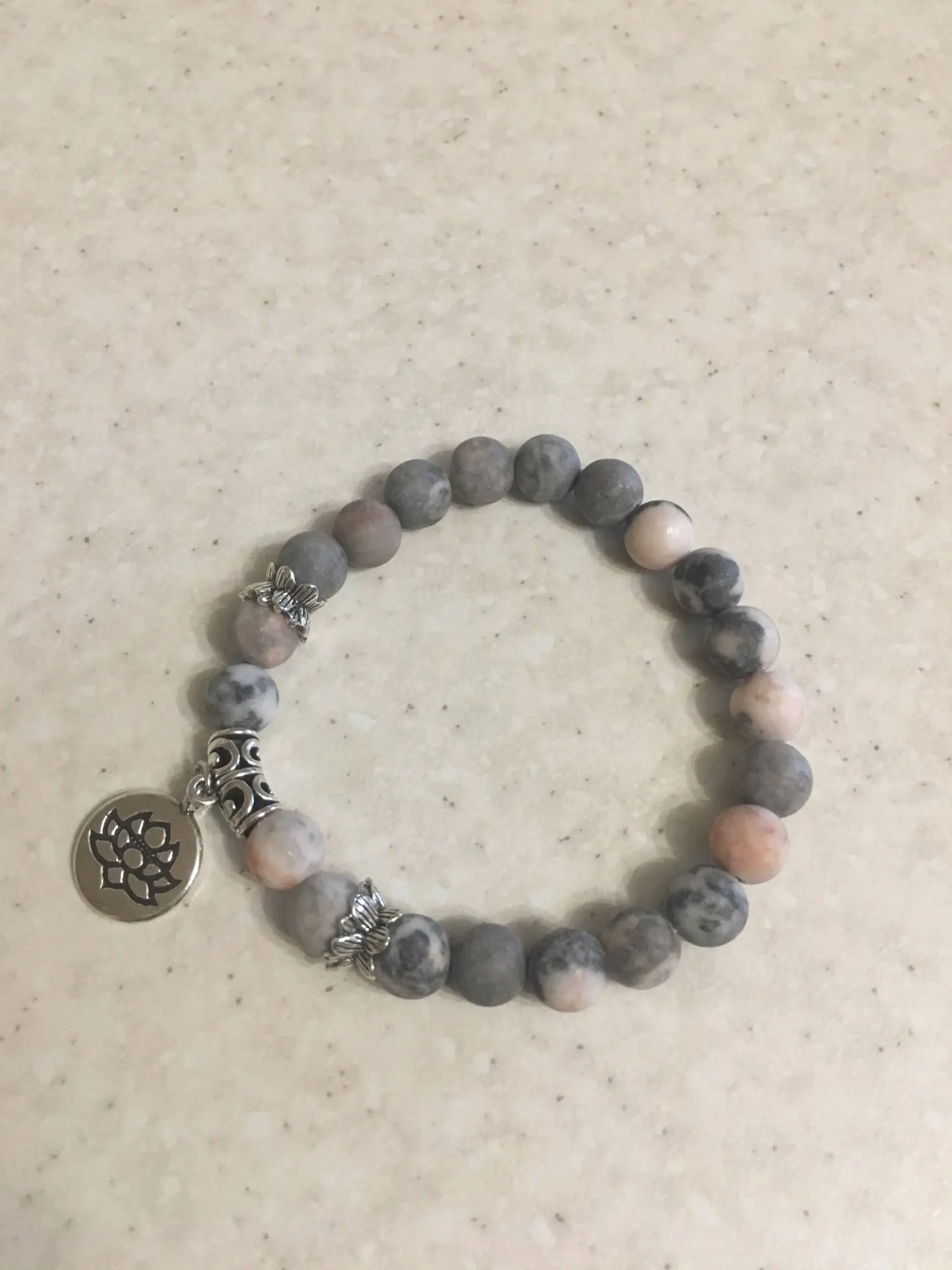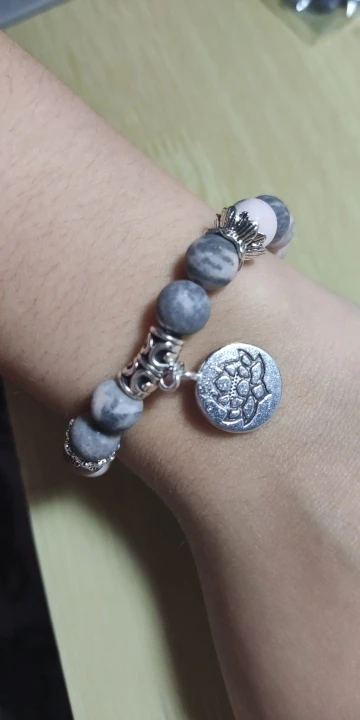 Natural Pink Zebra Stone Bracelets Women Buddha Prayer Silver Color Lotus Charm Bangle Pulsera Healing Energy Women Bracelets