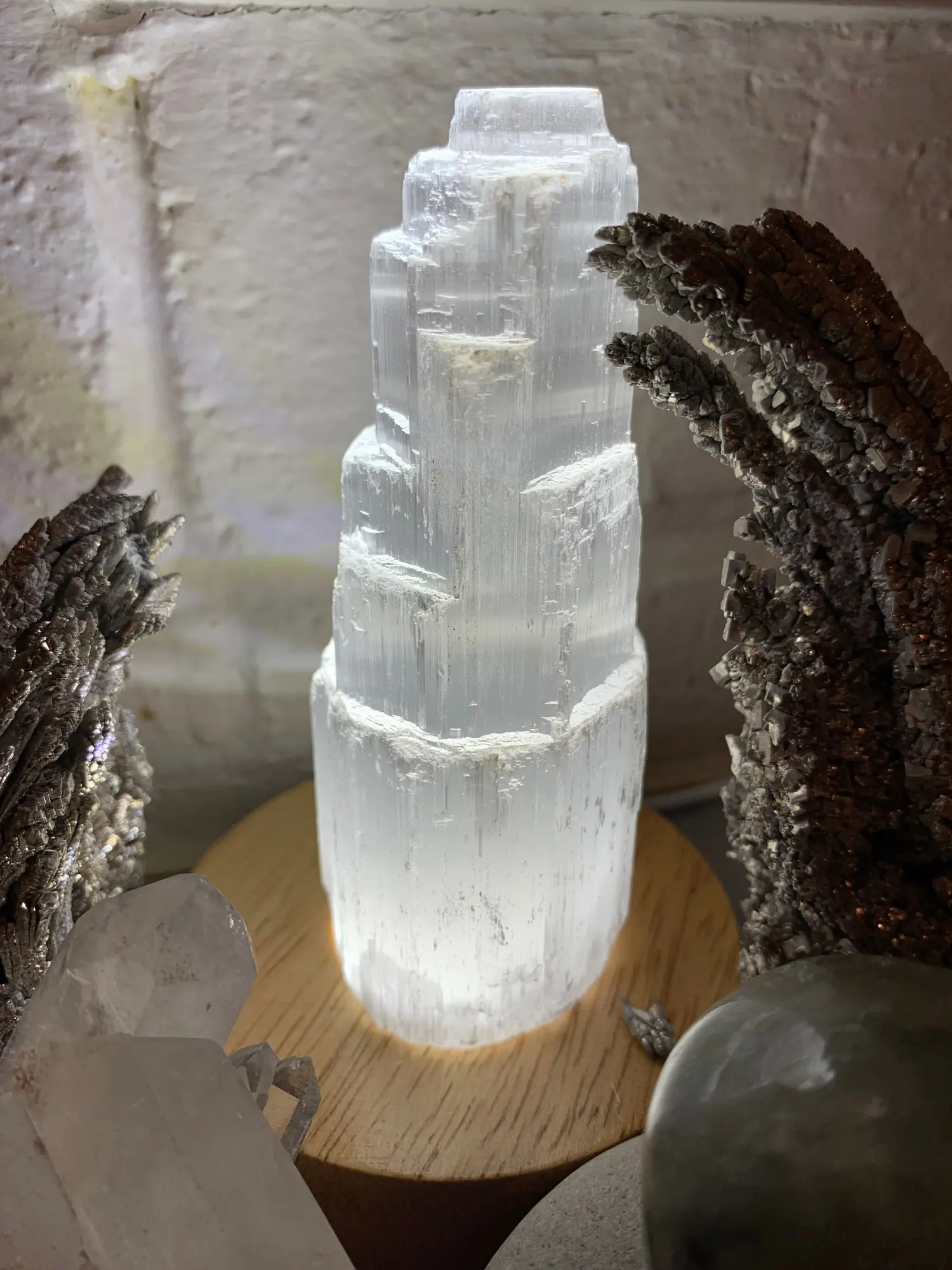 Natural quartz crystal selenite tower lamp reiki healing home decor mineral specimen collection