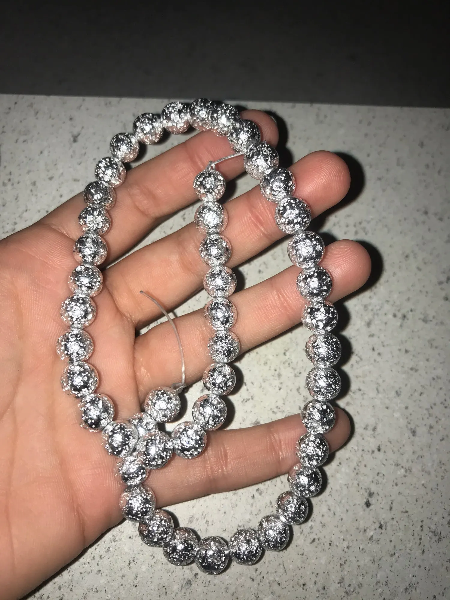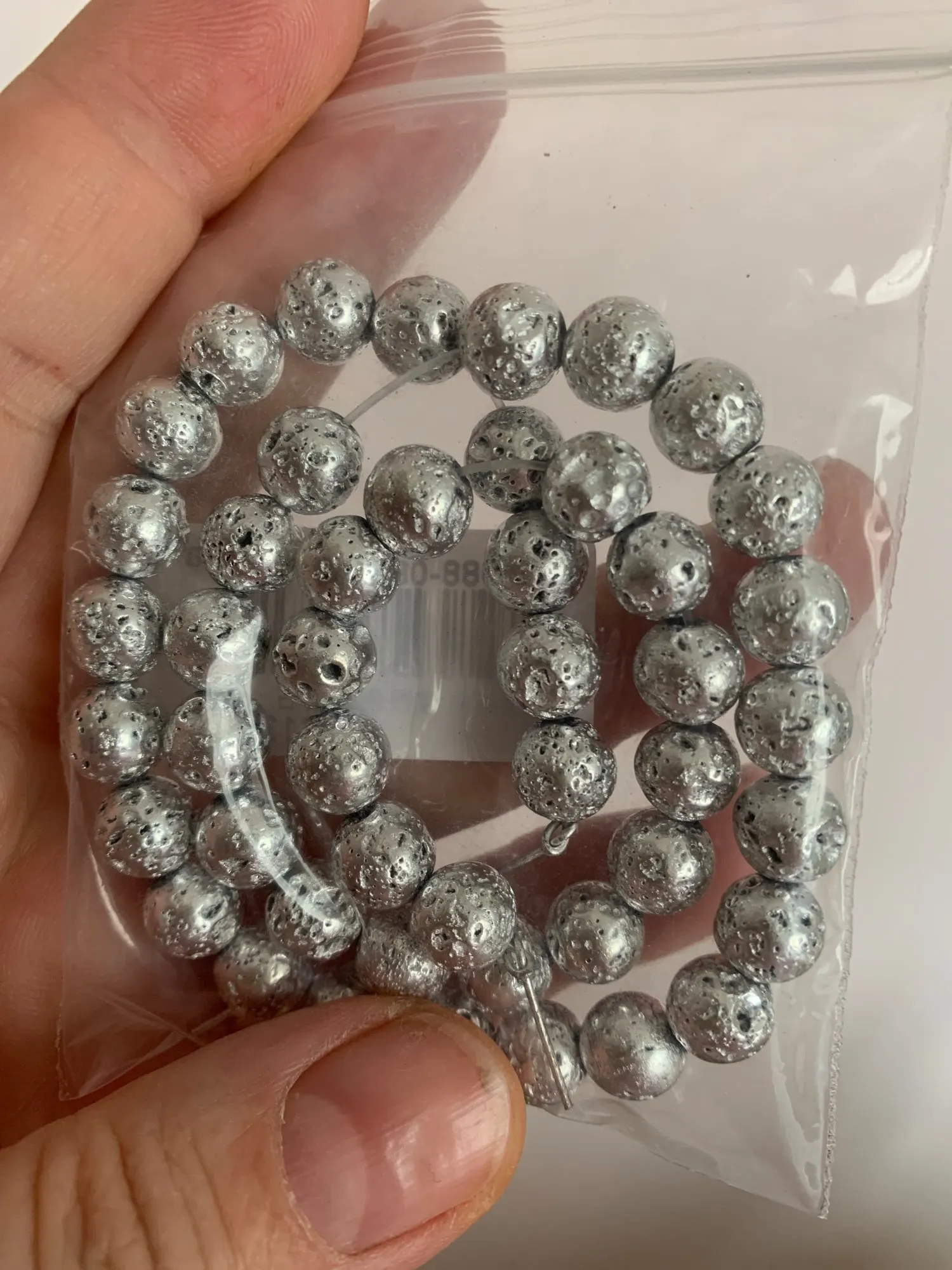 Natural Stone Beads Silver Color Rock Volcanic Lava Round Beads For Jewelry Making DIY Bracelets Accessories 15'' 4/6/8/10mm