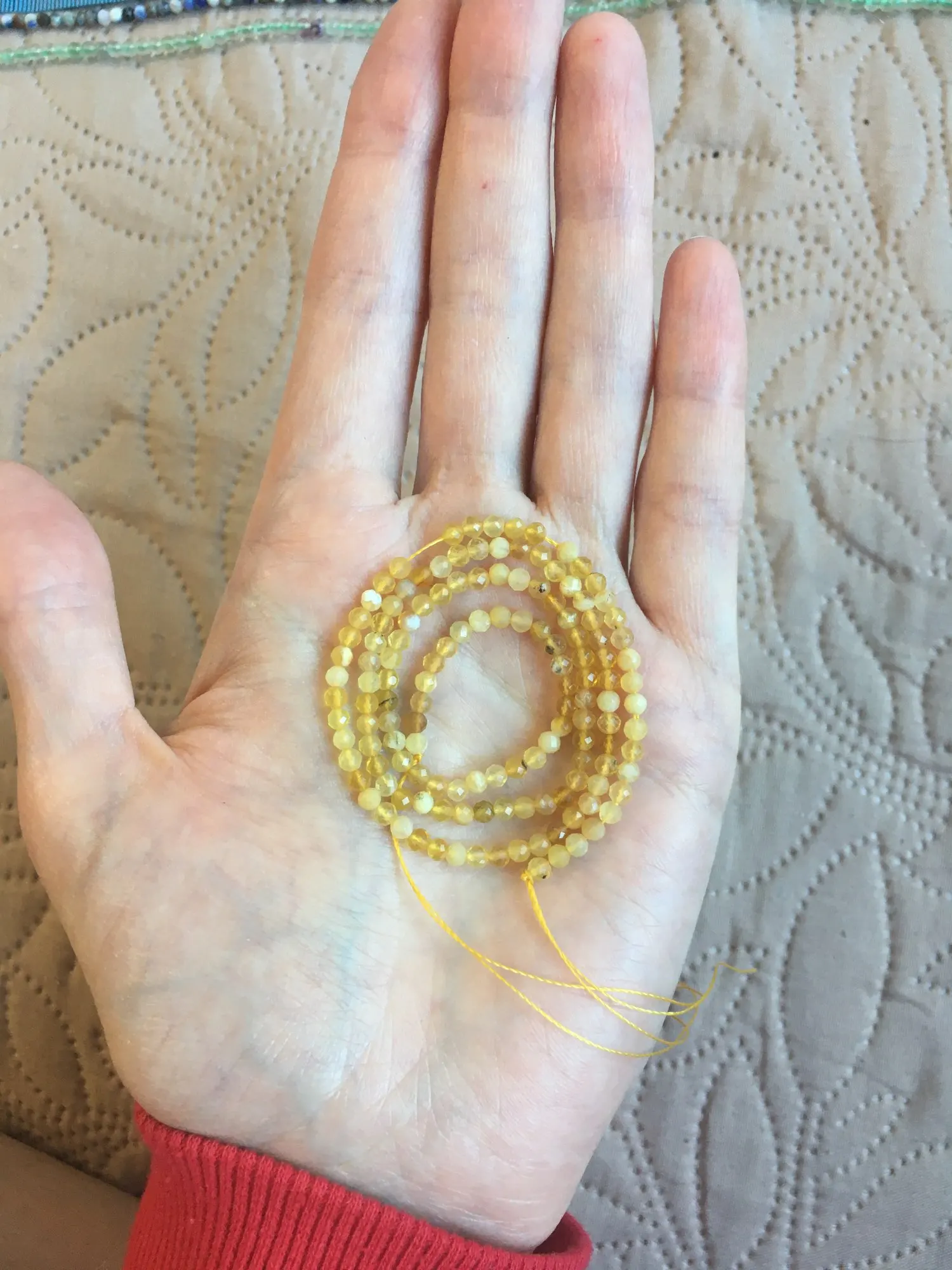 Less blue and greener than in the photos, but very, very beautiful, with very good looking and fine air. TY