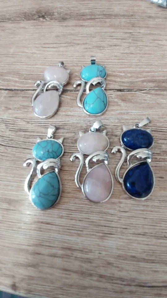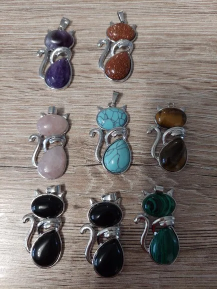Natural Stones Cat Shape Flat Bead Pendant Cute Kitten Plated Pendants For Jewelry Making DIY Reiki Necklaces Accessories