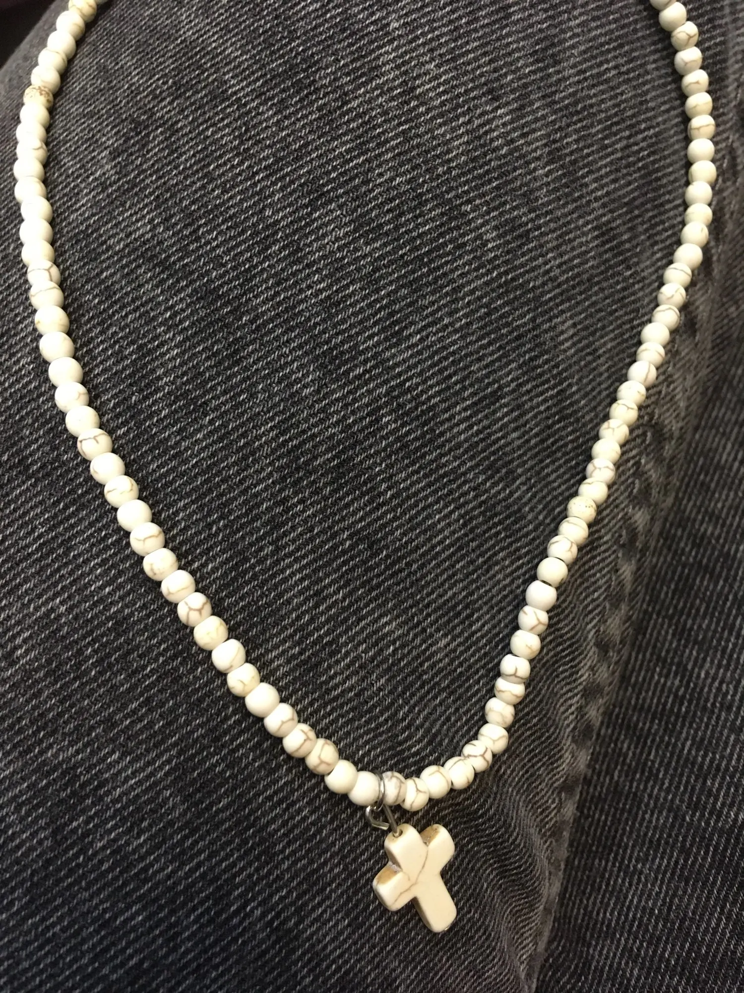 Natural Turquoises Stone Chokers Necklaces For Women Charm Light Blue&White Pendant Necklace Prayer Cross Necklace