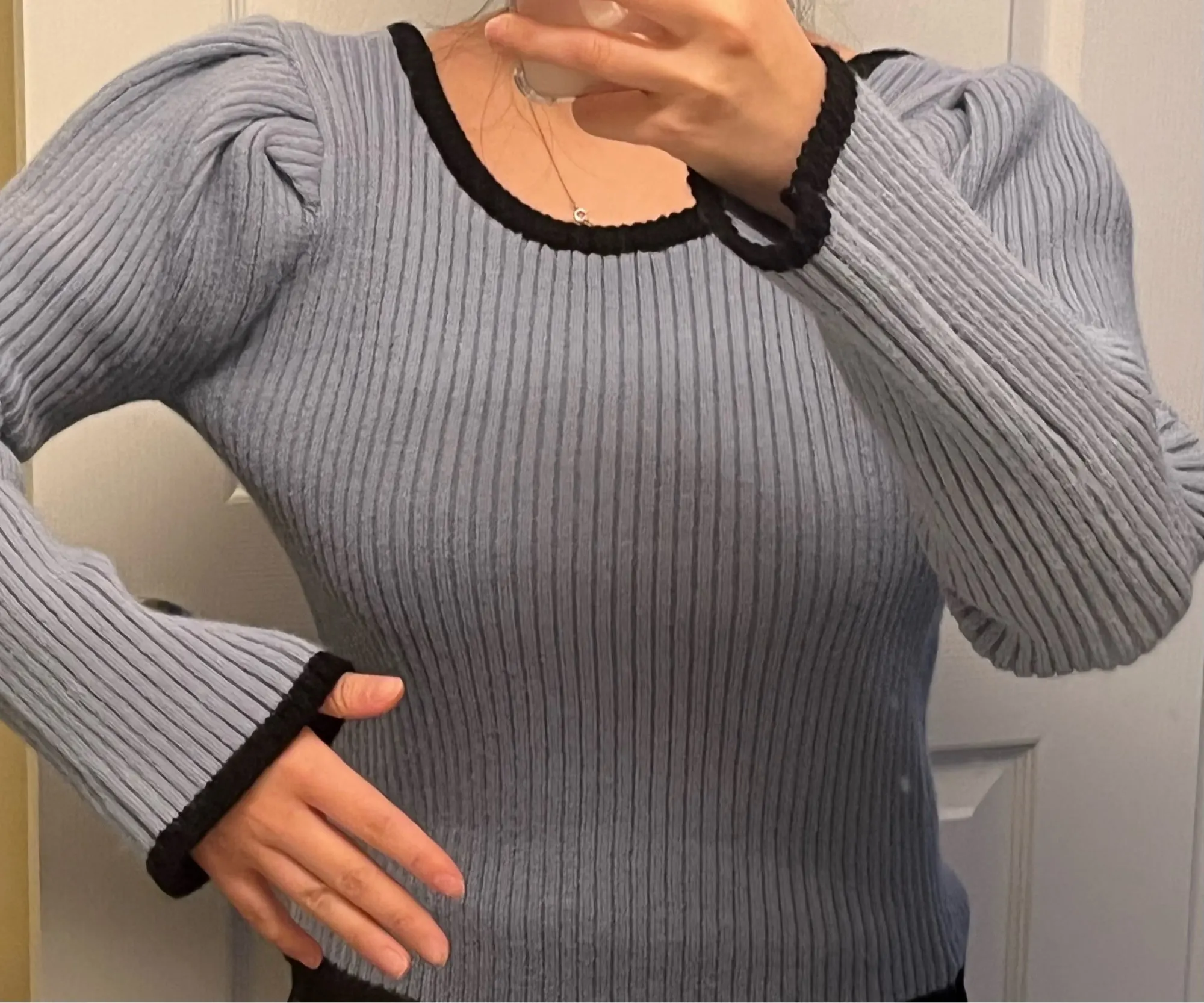 Neploe Women Sweater Puff Long Sleeve Knitted Tops 2022 Autumn Winter Korean Contrast Color O-neck Pullover Knitwear 4D932