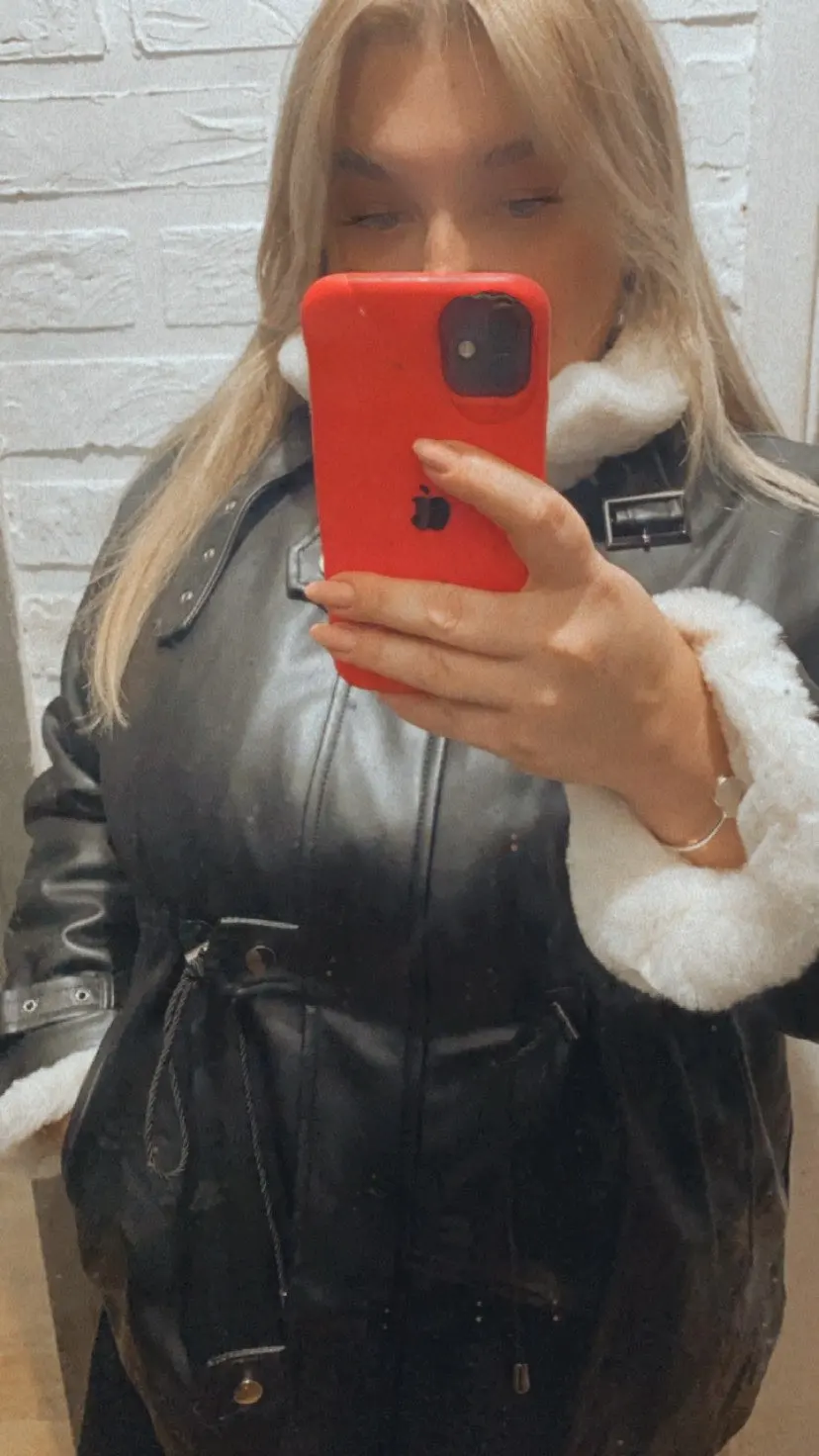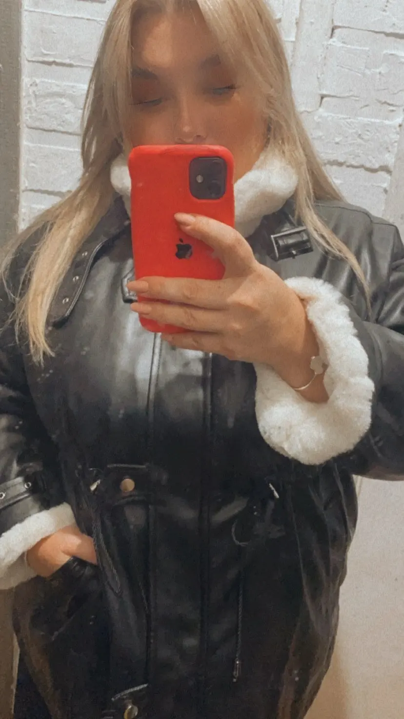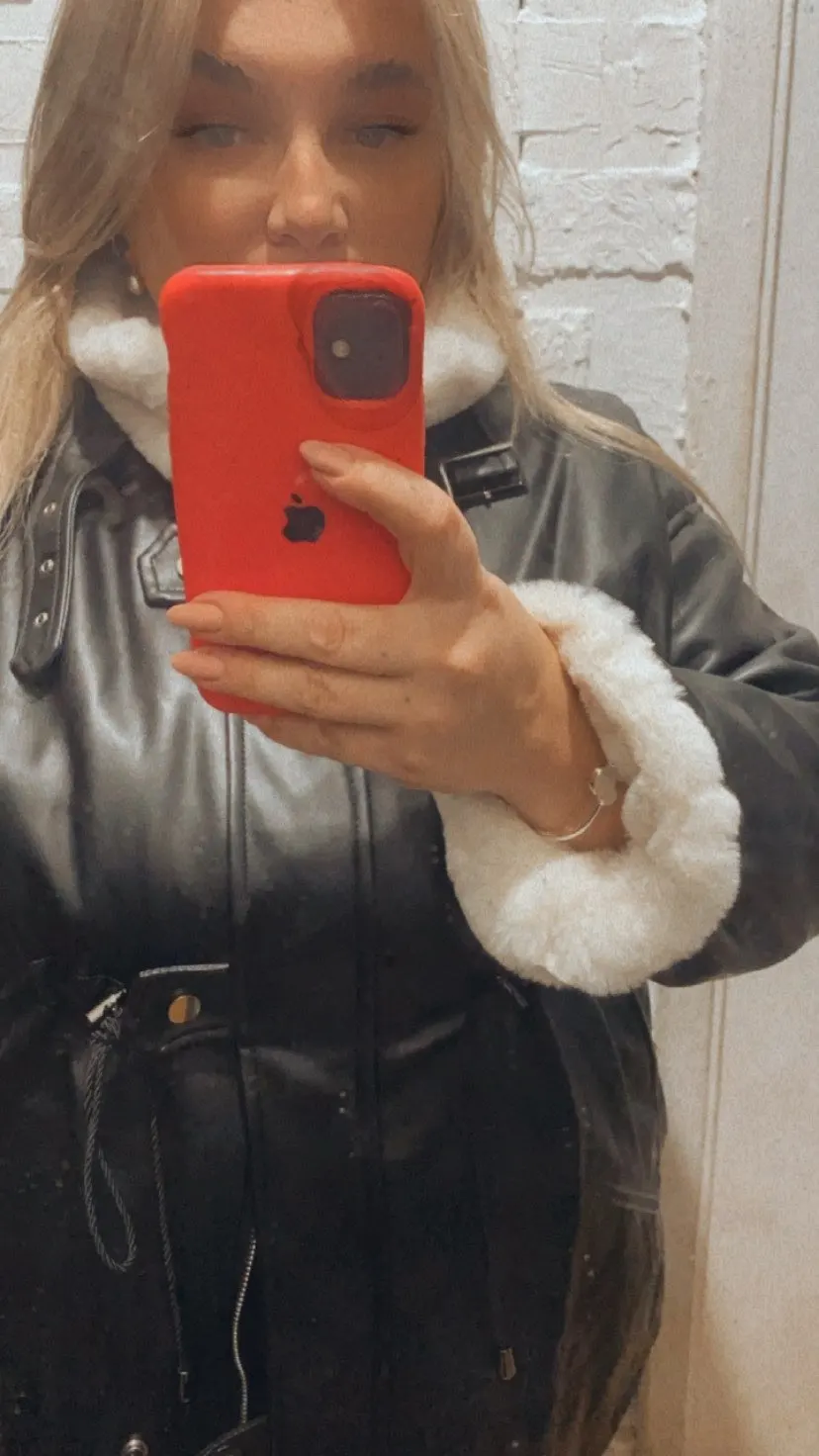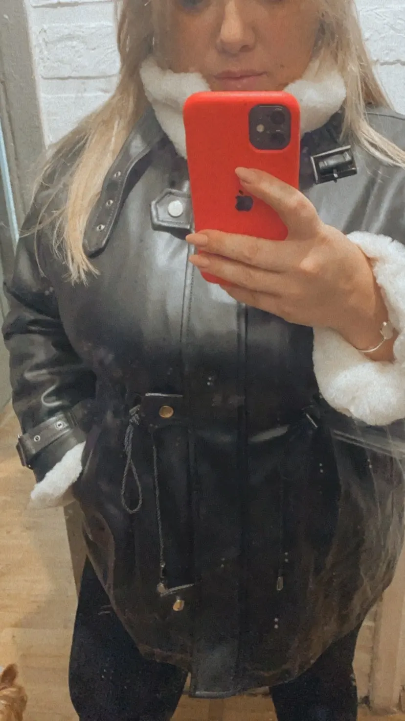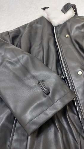 Nerazzurri Thick warm black leather jacket with fur inside long sleeve zipper Winter plus size faux fur lined coats for women