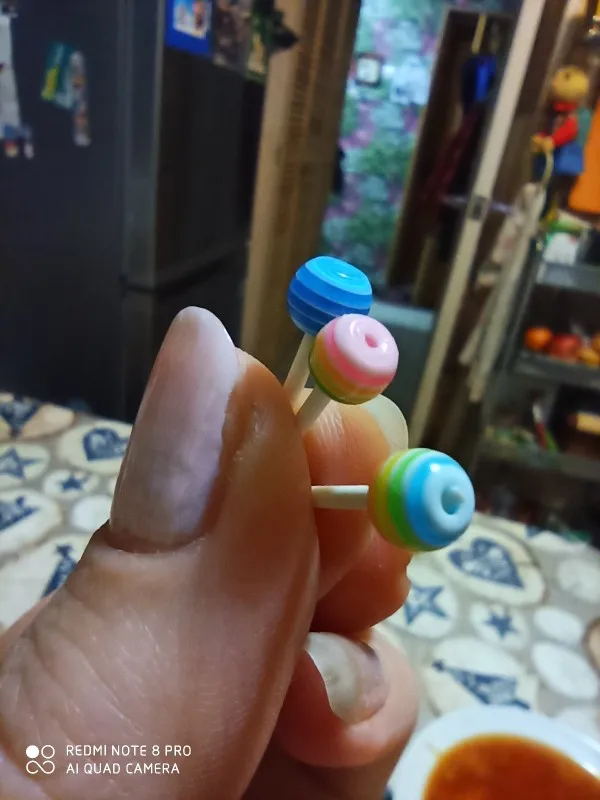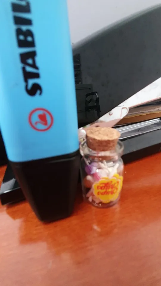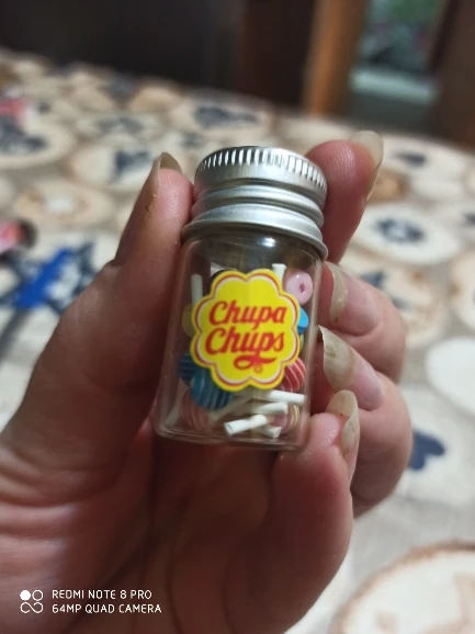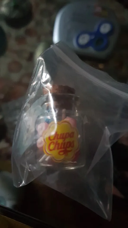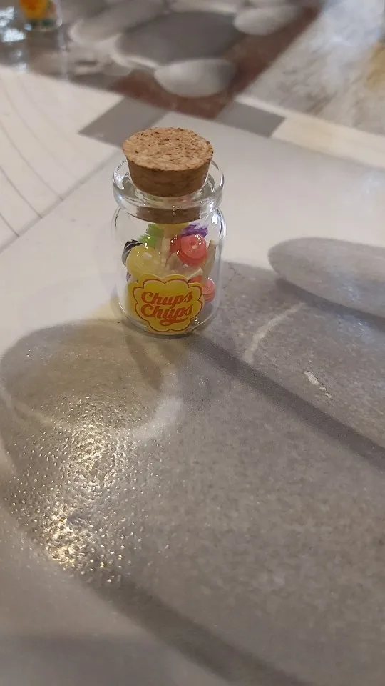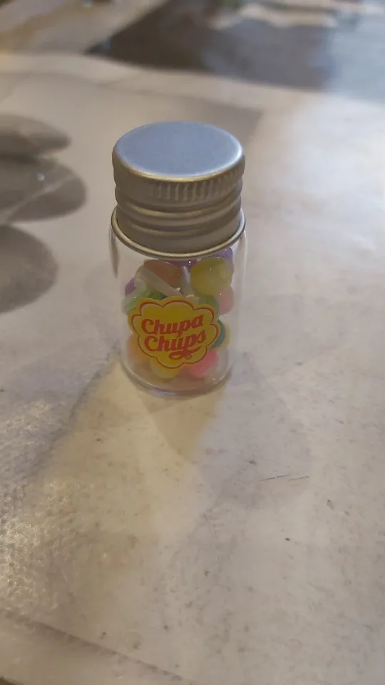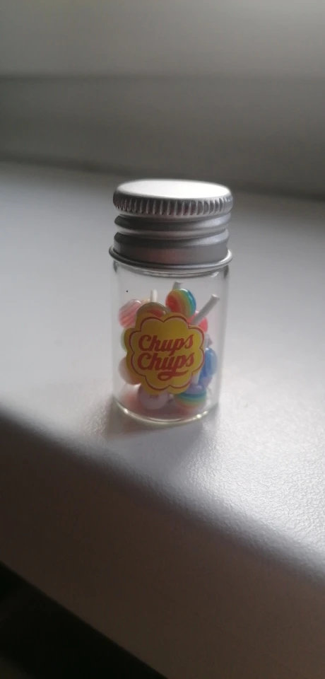 came very fast, the bottle is plastic as well, the cork comes off, and the lollipops actually come out. you could make a necklace out of it without worrying about it shattering.