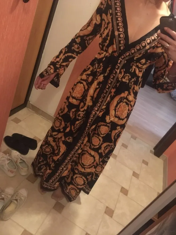New 2022 Women's Summer Boho Floral Long Sleeves Maxi Front Split Long Dress Party Beach Sundress