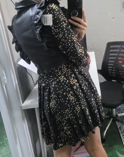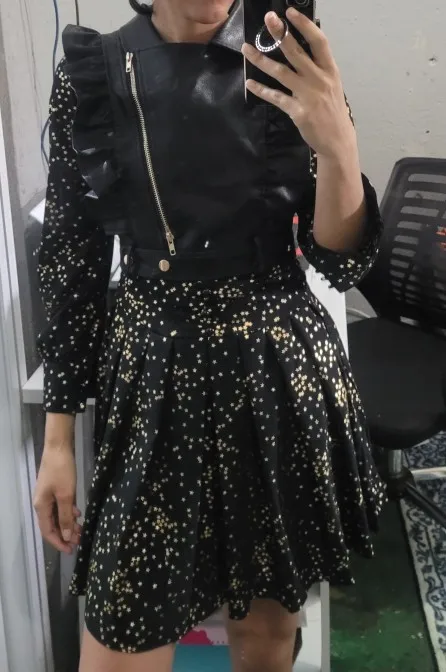 new arrival fashion korean two piece set women OL profession cool trend short vest PU coat and floral print dress slim black set