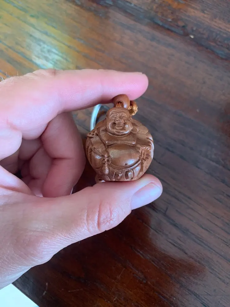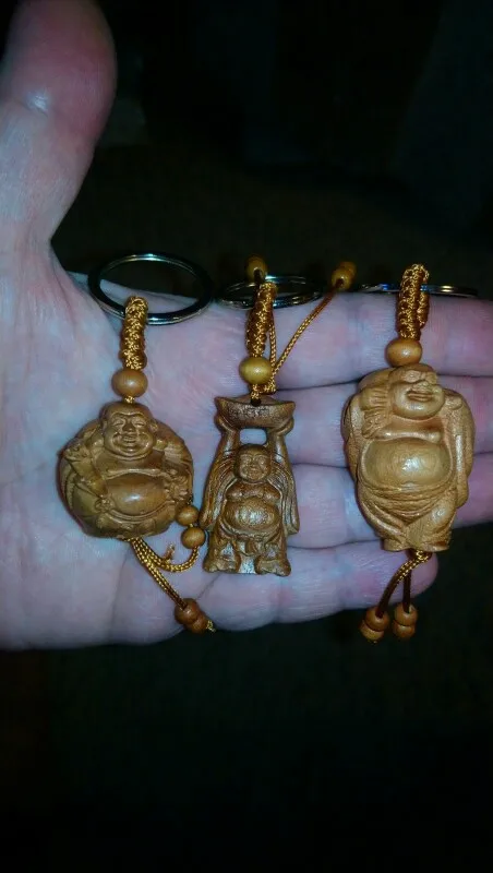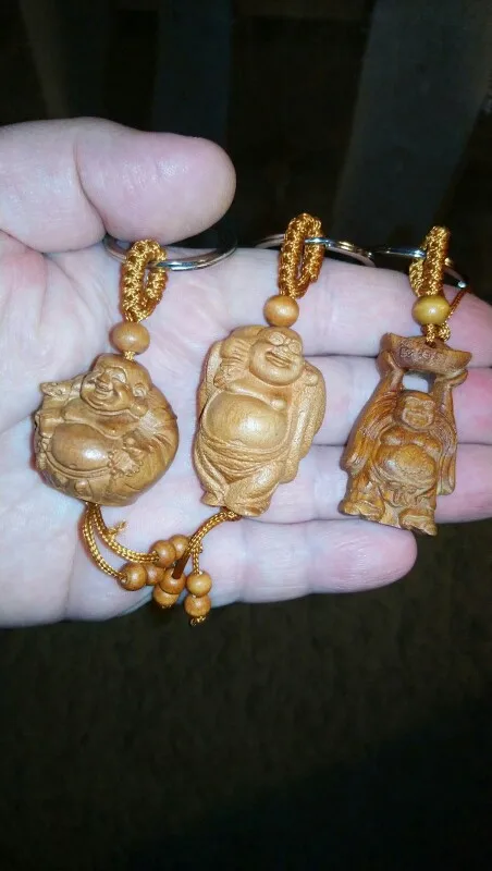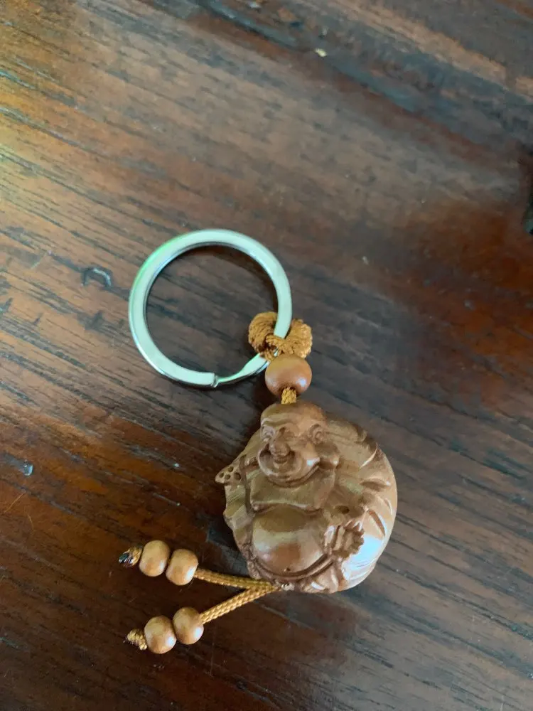New arrival natural wood smile Buddha charms keychain key ring for women men fashion key bag car decorate key chains jewelry