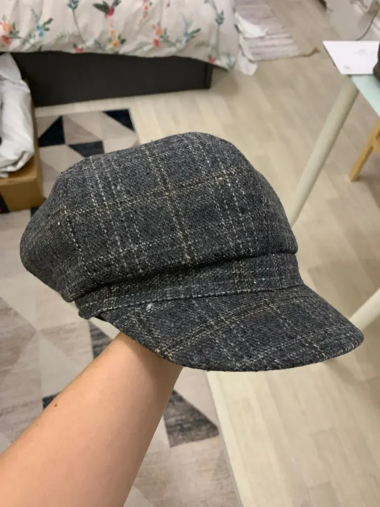 New Autumn Spring Cute Casual Octagonal Hat Female Small Plaid Beret British Retro Duck Tongue Painter Wool Hat
