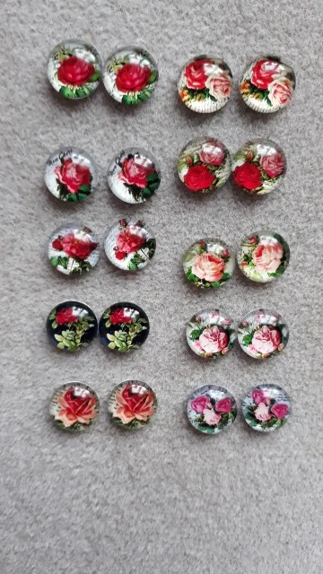 New BeautyColorful Flowerspattern10pcs mixed 12mm/16mm/18mm/25mm Round photoglass cabochondemoflat back Makingfindings
