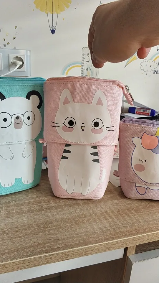 New creative canvas pencil case large capacity retractable pen case, school supplies stationery box cute student pen holder gift