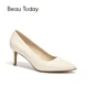 European size 39, US 38.5 was selected from size chart, true to size. Very classy. Look good. 5 cm heel very comfortable. A bit narrow for now since it's new. Will purchase another pair.