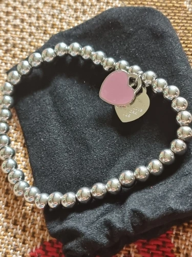 New Fashion Women Party Jewelry Lover Heart Pendant Stainless Steel Elastic rope Bracelet Bead Chain Woman Bracelets Bangles