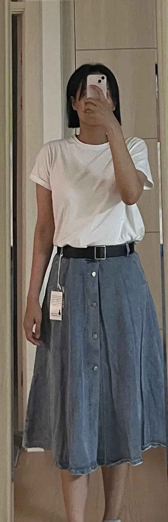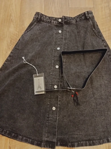 With Belt Button High Waist Saia Jeans