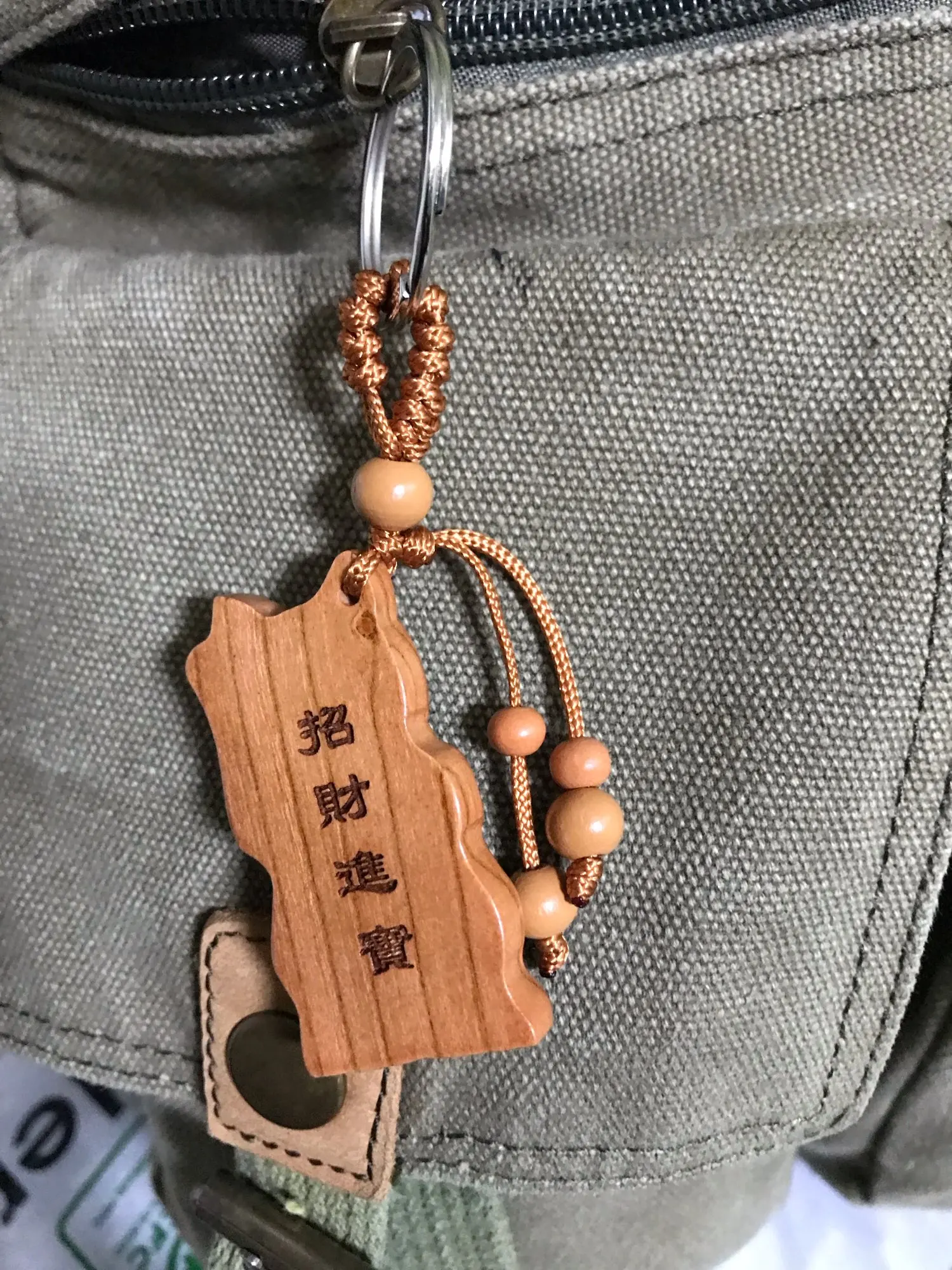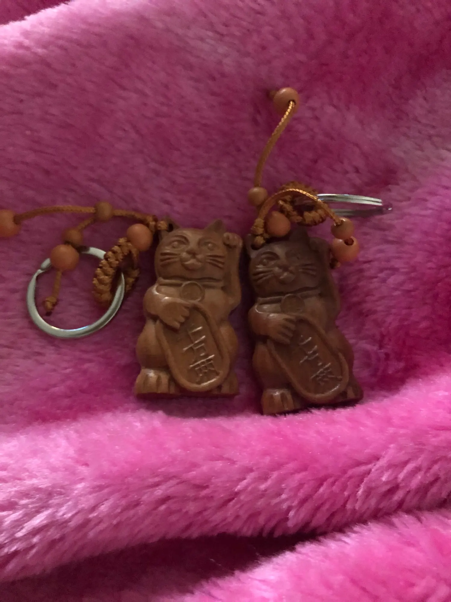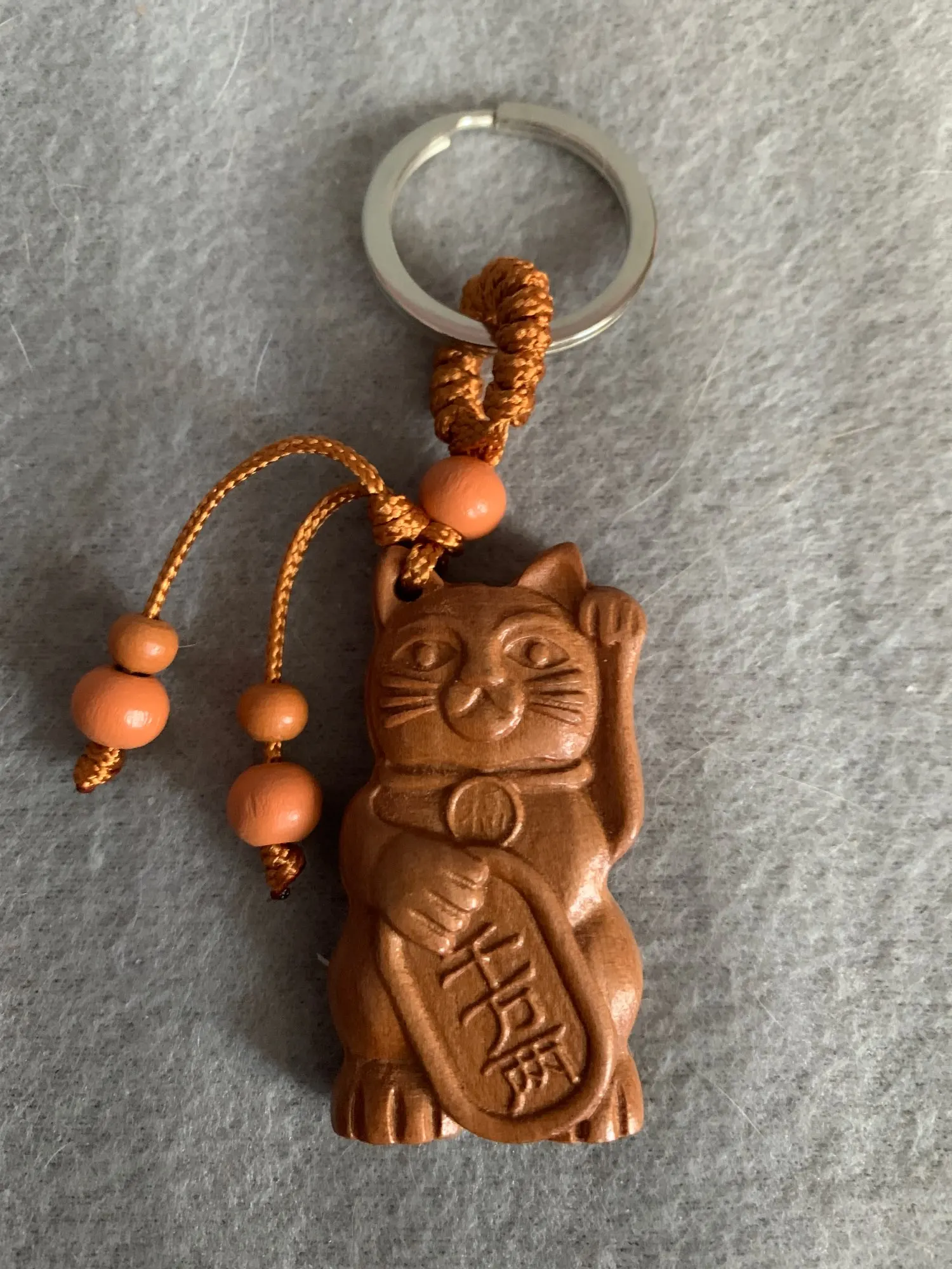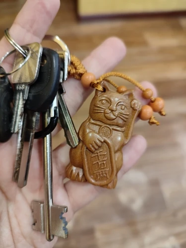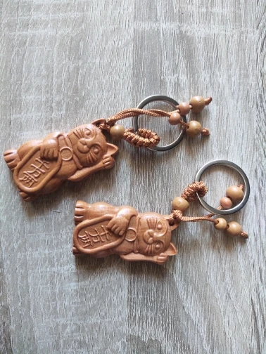Fortune Cat Carving Wooden Pendant Keychain