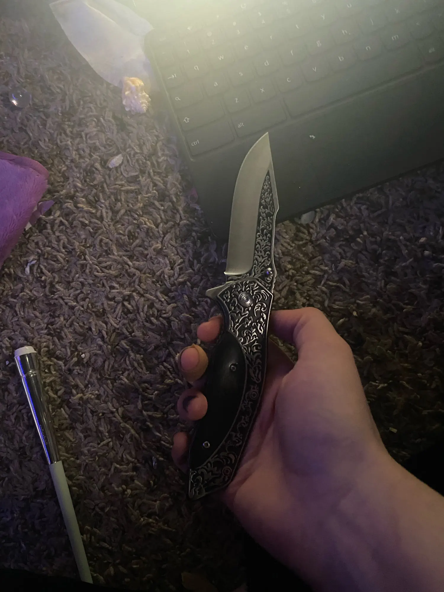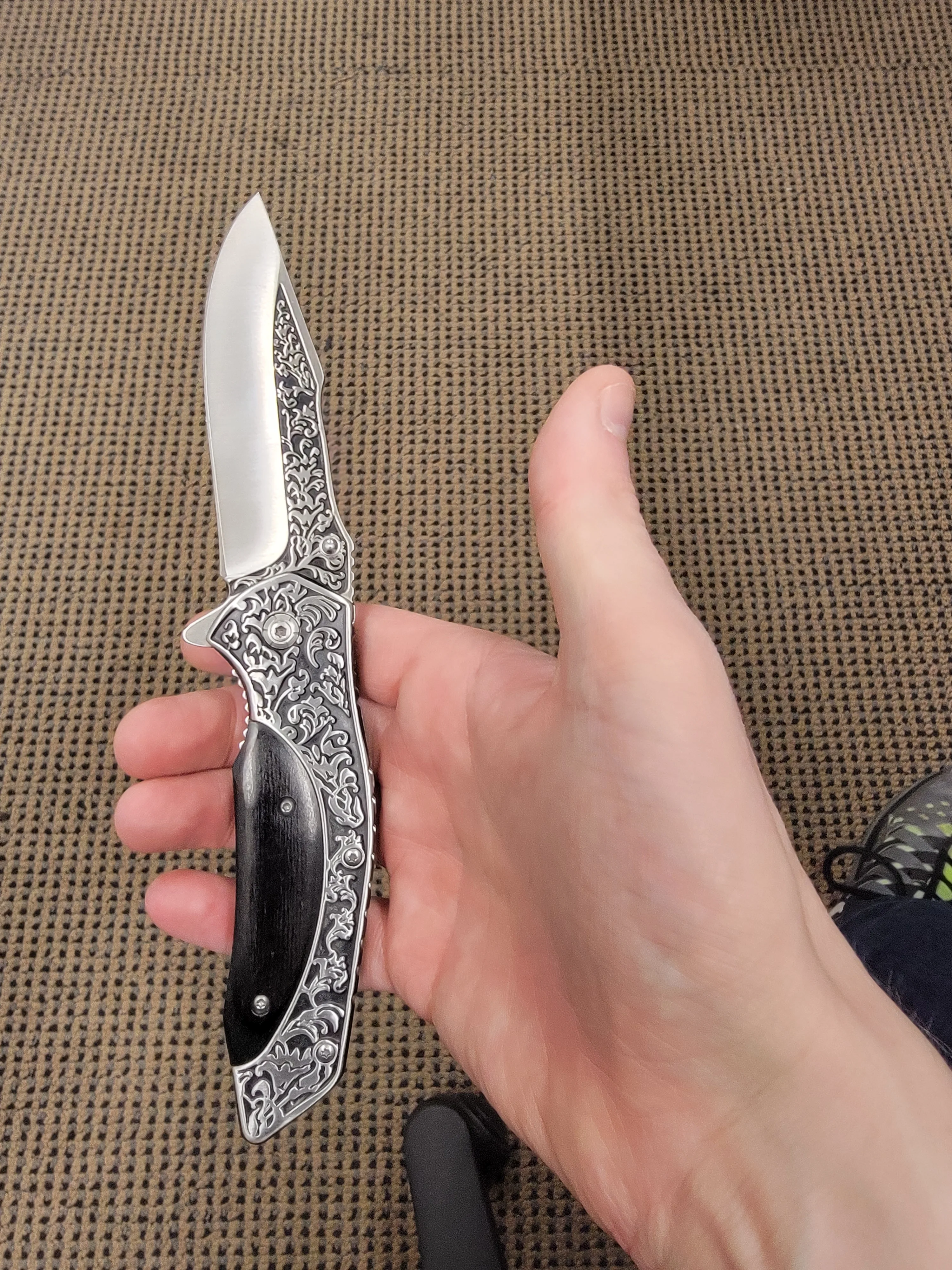this knife is the most beautiful thing that I think I've seen in a long time! I got it for my husband but I almost want to order one for myself now! Absolutely beautiful