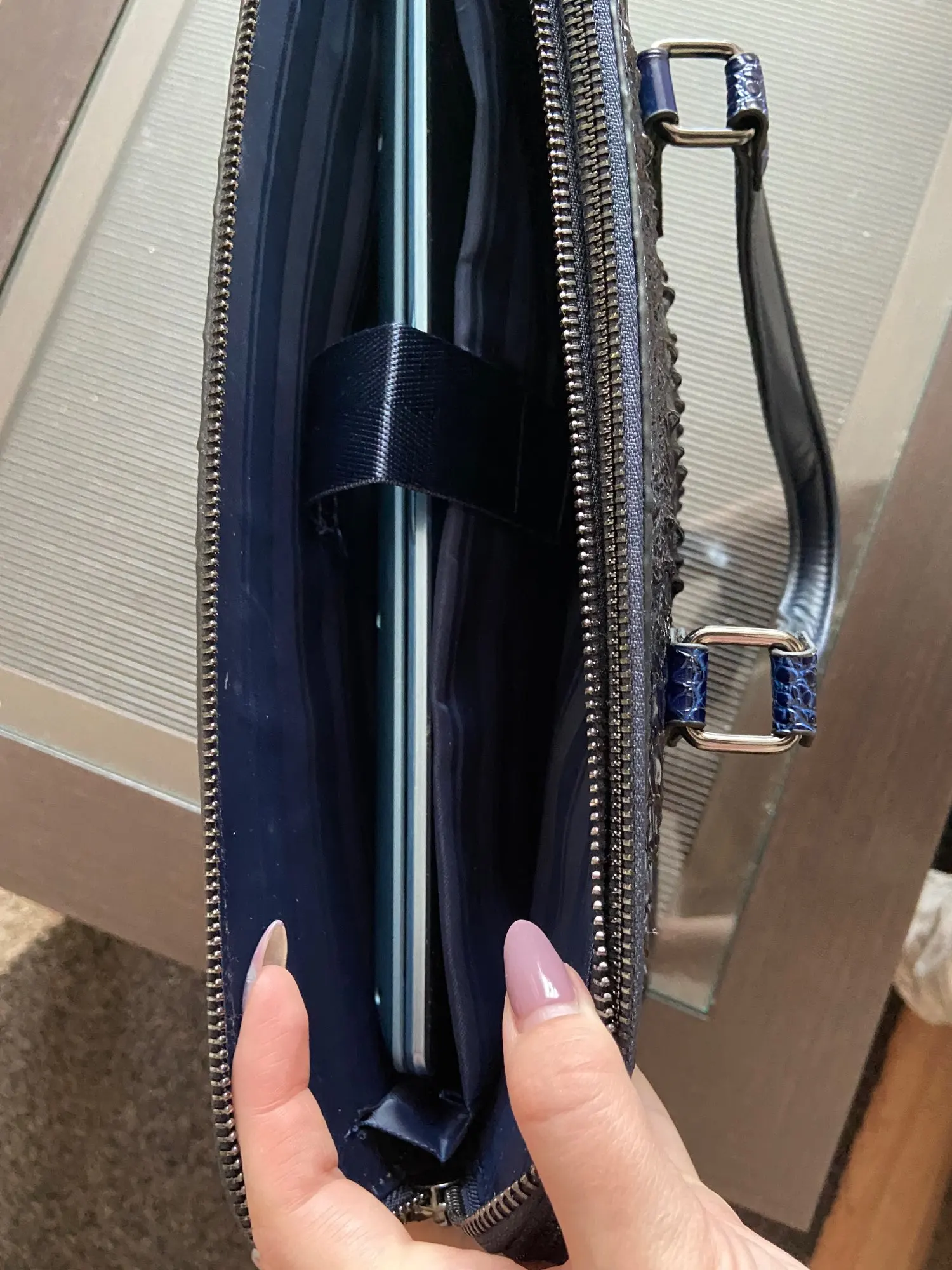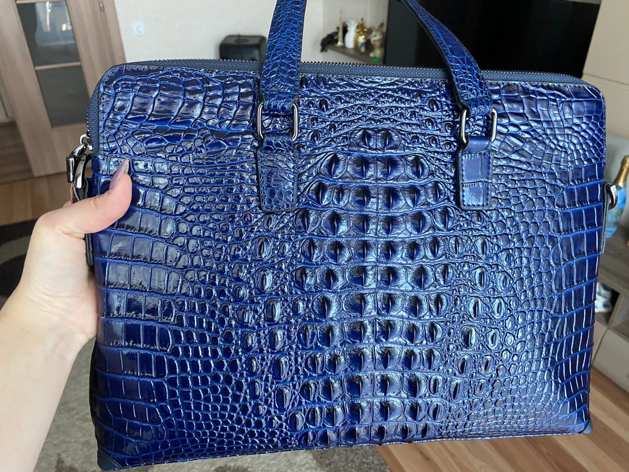 I bought this for my loving Russian fiance and he loved this bag. The body looks like natural leather but the handles look okay but when you touch it its not natural leather. Still great for the price. Thank you, I will shop here again.