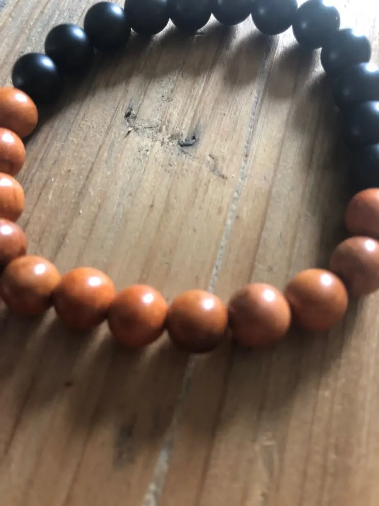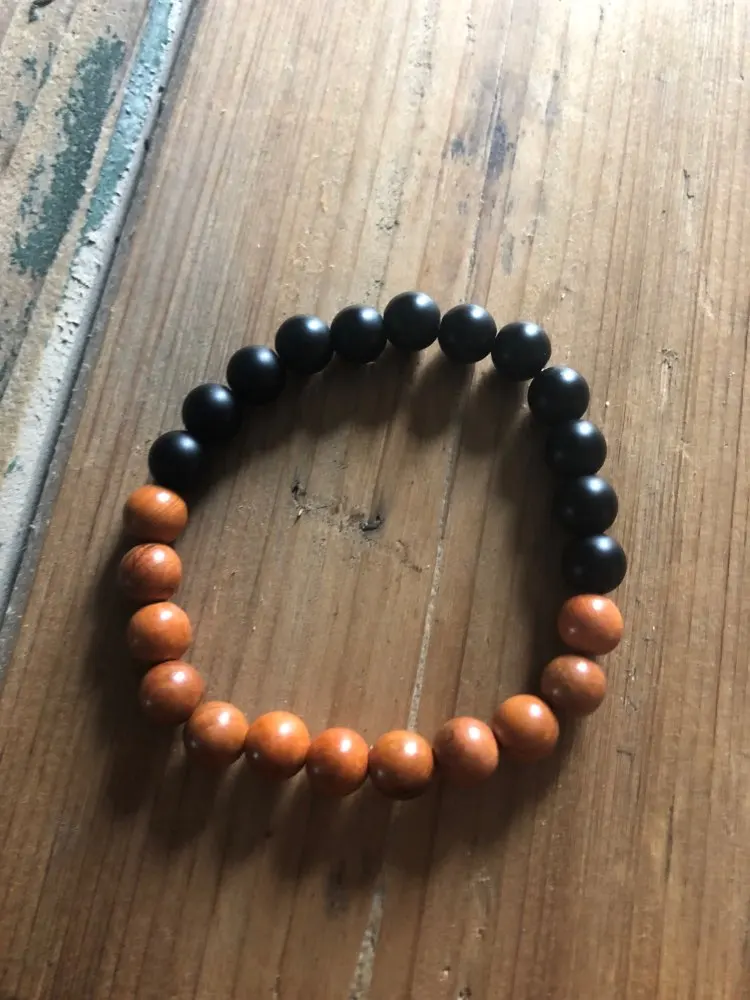 New Men Natural Wood Beads Bracelets Black Matte Onyx Meditation Prayer Bead Bracelet Women Wooden Jewelry,Yoga Jewelry