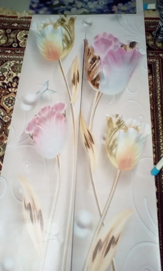 New Modern Embossed Tulip Flowers Door Stickers Mural PVC Self-adhesive 3D Wallpaper For Living Room Bedroom Door Decor Decals