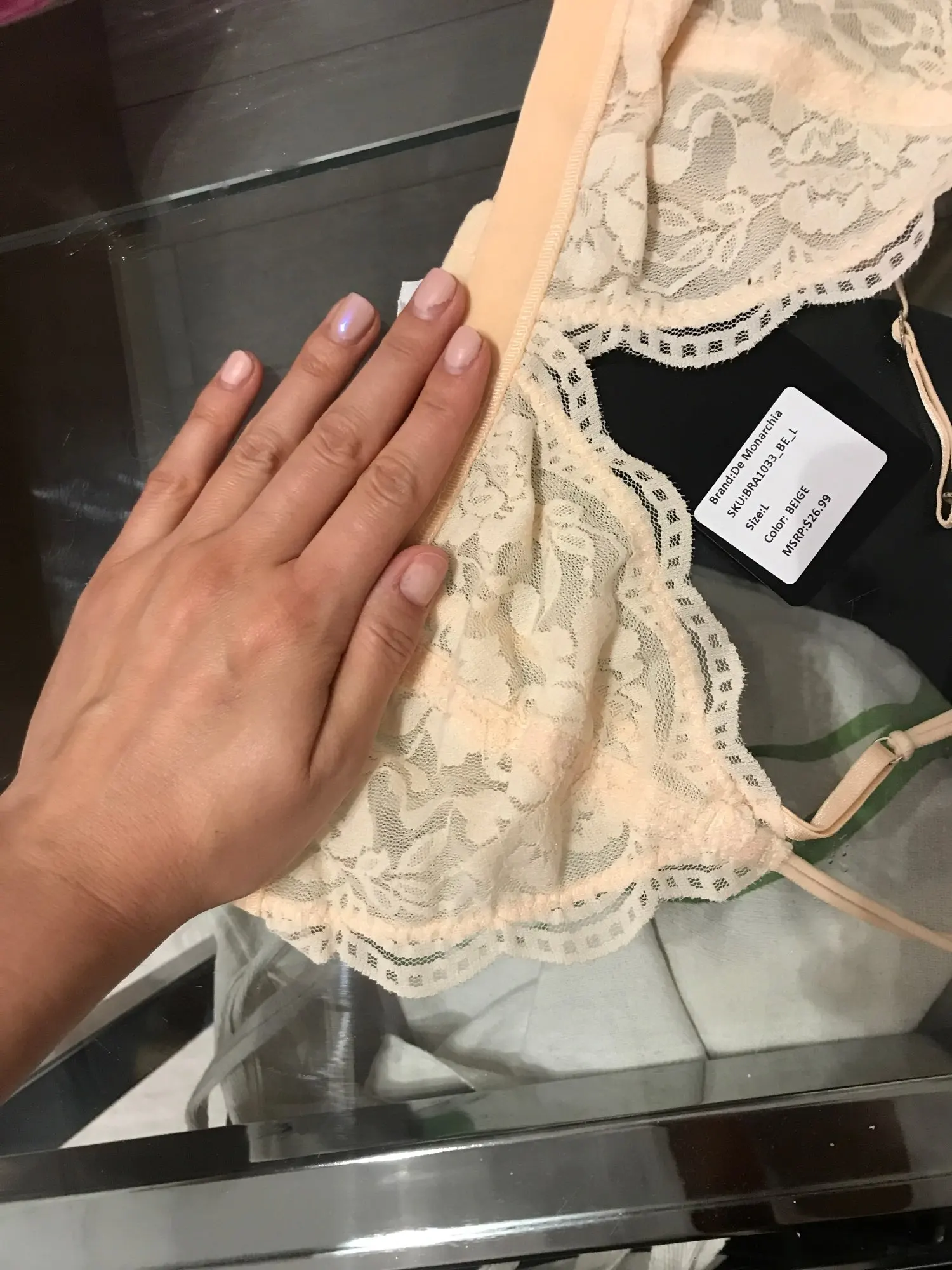 Cute bralette. Product description is accurate. I'm 5'3" and 115 lbs and size S fits me well on the smallest hook.