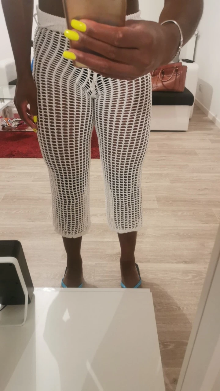 Great. I am surprised it is actually knitted. The material is soft and pleasant. Although I thought the holes will be smaller to give a semi-transparent look, but still this pants are great. I am happy!