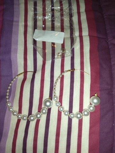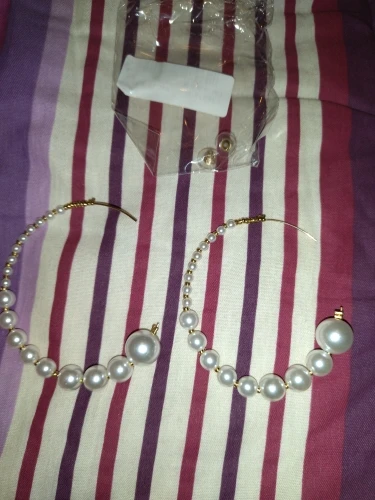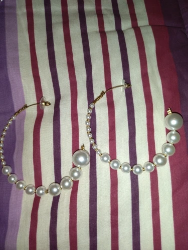 Earrings are same as depicted, however mine arrived damaged. It was bended, and one pearl was also damaged (seemingly burned?) and I had to take off sticky stuff I assume is the damage. Nonetheless, cute earrings.